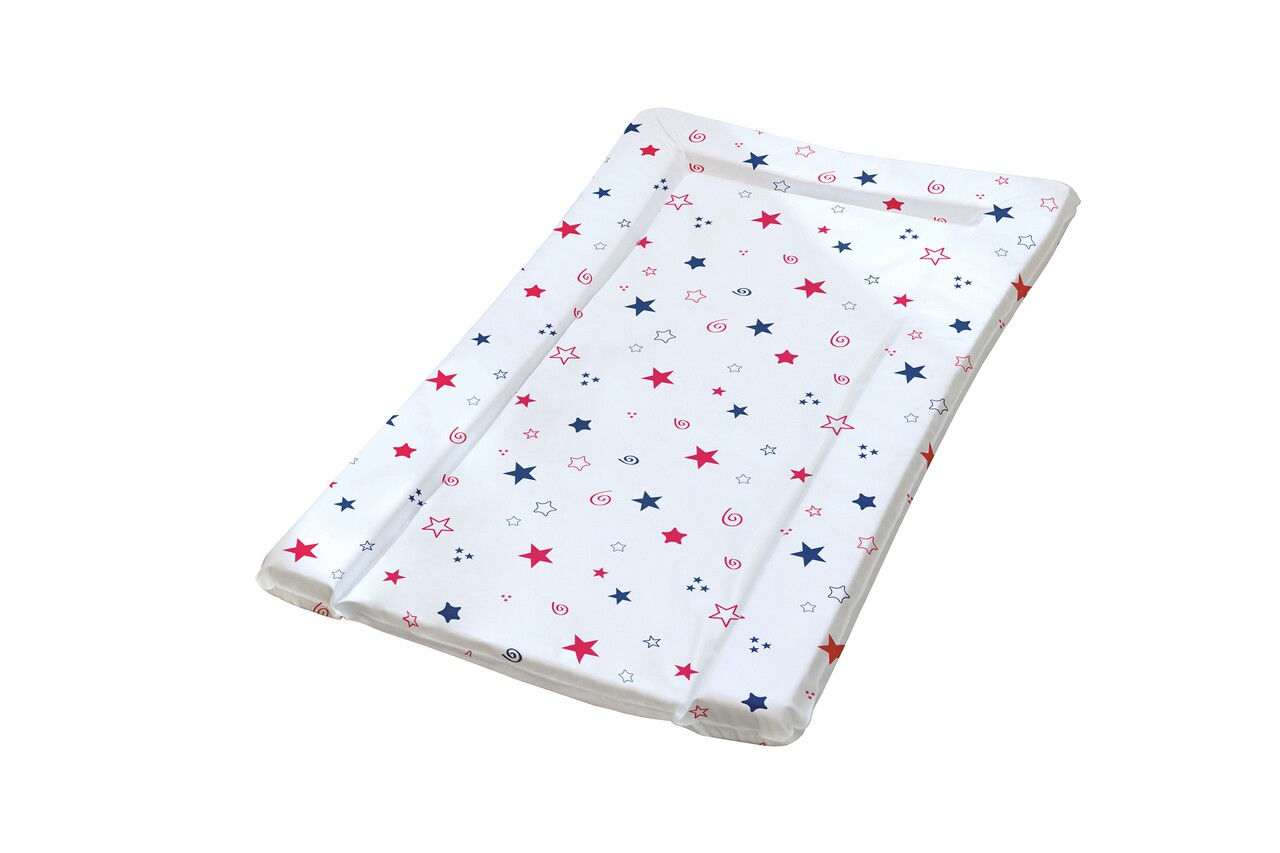 Az alap habszivacsból készült, amely kényelmes felületet biztosít a baba számára, a szélek pedig biztonságot és védelmet nyújtanak pelenkázás vagy ruhaváltás közben.
