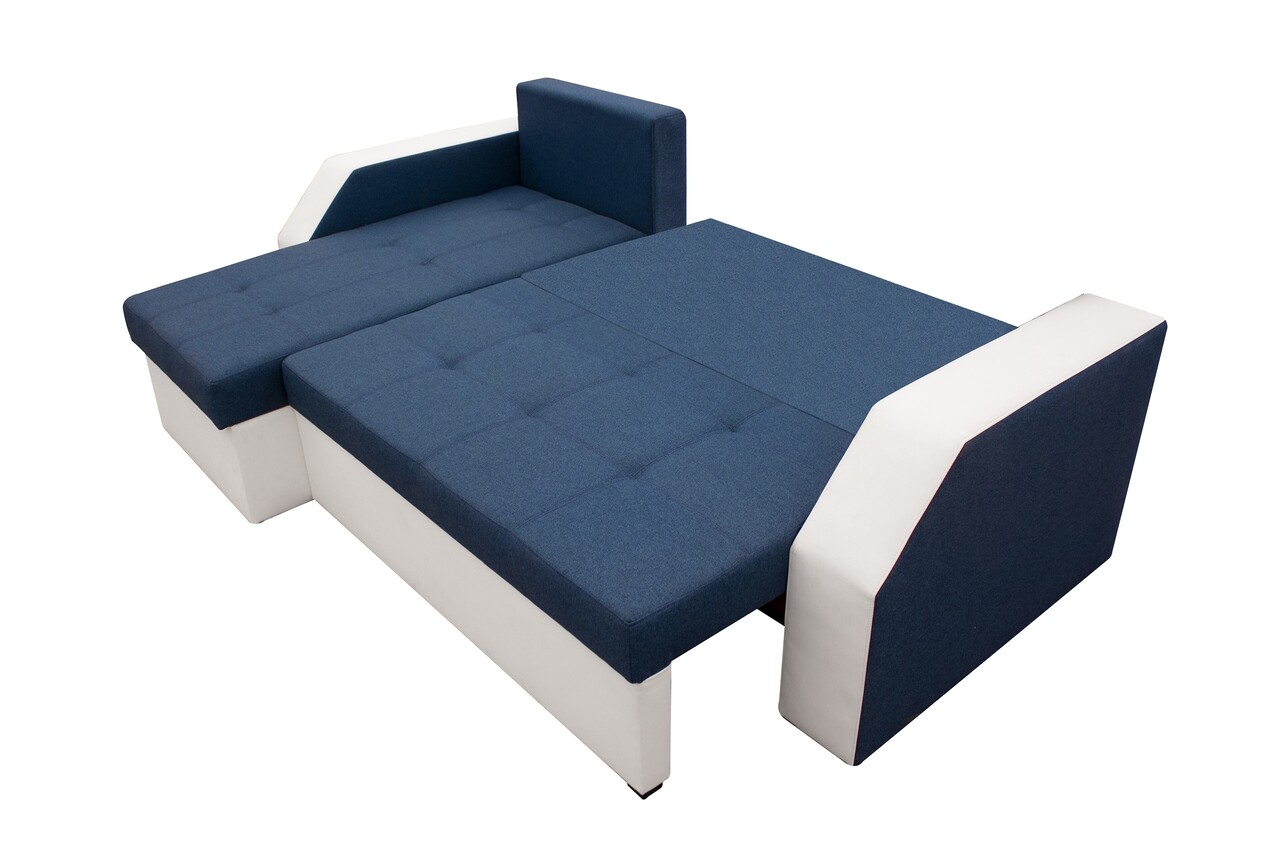 Madrid kanapé sarok, 226x145x79 cm, 2 tárolódoboz, Megfordítható, Fehér / Olajkék