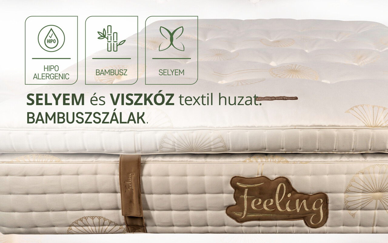 A technológia és a prémium anyagok kényelme közötti egyensúlyt kínáló Feeling Luxury matrac alapja 7 Comfort Zónával rendelkező, egyedileg csomagolt mikrorugókból épül fel, amelyeket 2 réteg Green Form HD® alátámasztás borít, amely az Intelligent Latex HD®-vel együtt biztosítja a kényelmes alvást.