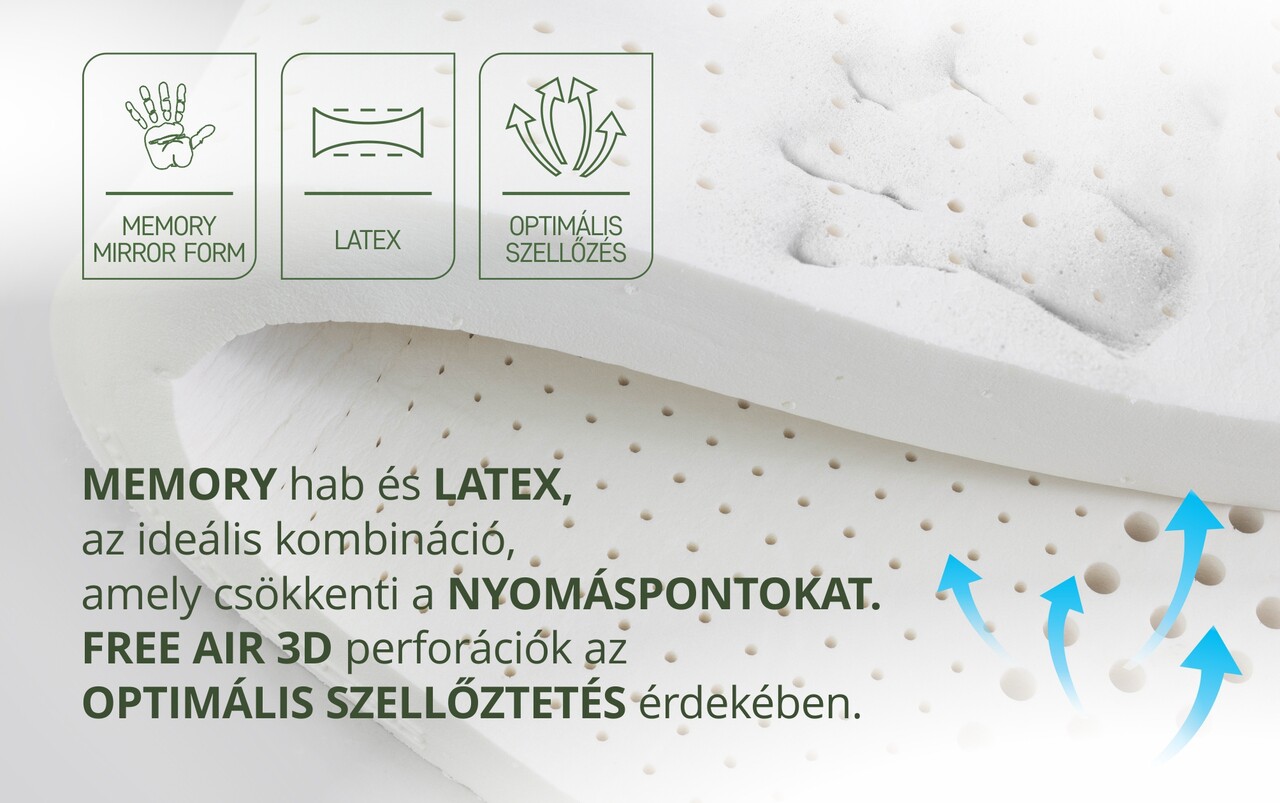 Az Intelligent Latex HD® HD® réteg rugalmassága és rugalmassága révén jobb testtartást tesz lehetővé, kiváló légáteresztő képességet és fokozott hőstabilitást biztosít, így nyáron hűvös, télen pedig meleg marad.