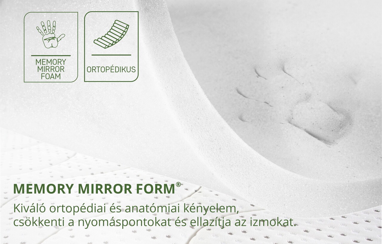 A matrachoz rögzített fedőréteg a komfortréteg, és Green Form HD® rugalmas habból áll, nyitott cellával és Green Therm Memory® habból, amely a testhez öntve megszünteti a nyomáspontokat alvás közben, ellazítja az izmokat és biztosítja az egészséges vérkeringést.
