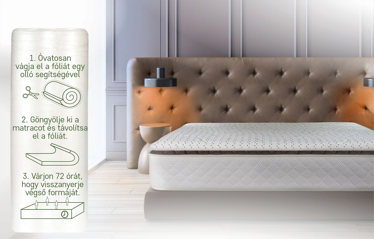 • Ha a terméket feltekercselve szállítják, akkor a kicsomagolás után 72 órát kell várnia, hogy teljesen visszatérjen eredeti formájához.