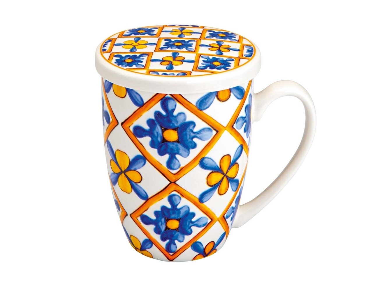 Medicea Flower Bögre szűrővel és fedő, Brandani, 350 ml, porcelán