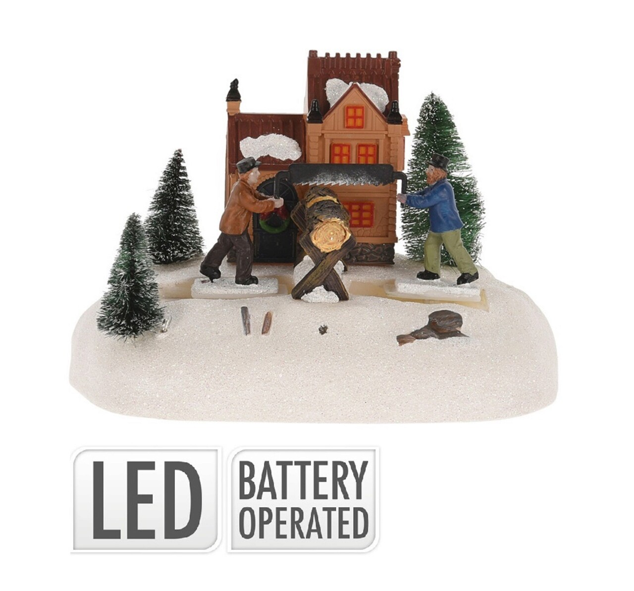 Men cutting wood Fénydekoráció, 20x11.8x13.5 cm, színes