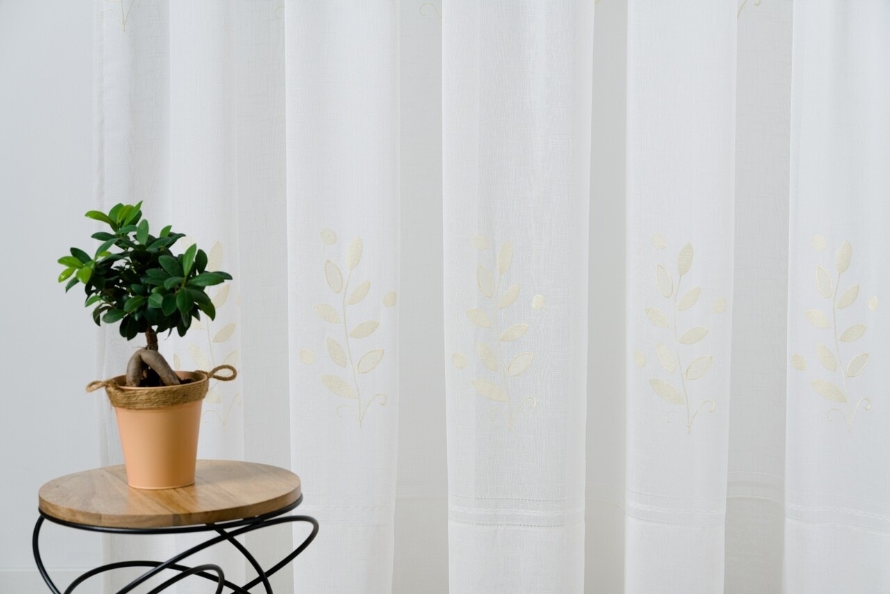 A finom virágbetétekkel az Antoneta függöny tökéletesen illeszkedik a minimalista stílusban, diszkrét romantikus jegyekkel díszített szobákba.
