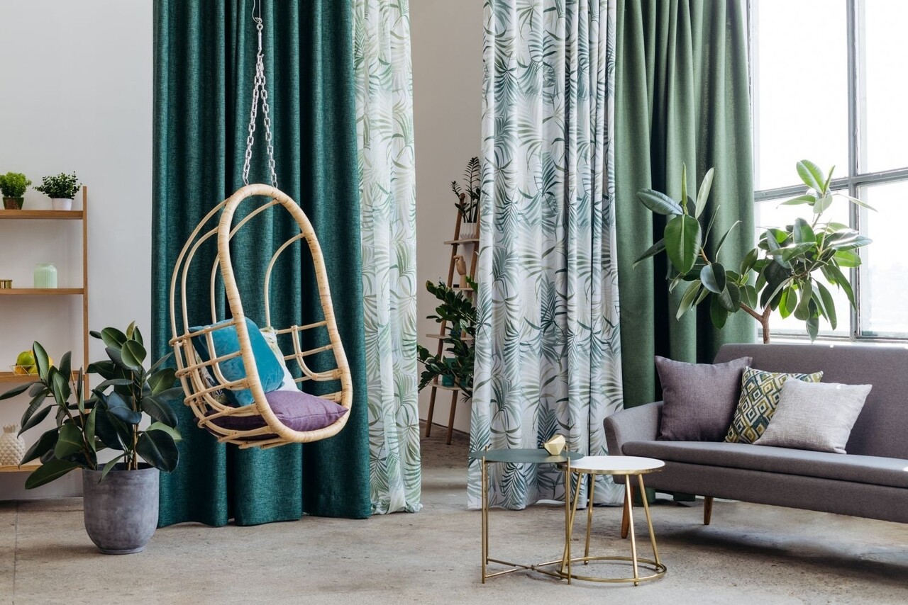 Kicsi és modern textúrájú Uni függöny, Bordeaux könnyen integrálható bármilyen elrendezésben. A függönyszövet gyönyörű redőkben van elhelyezve, a kapcsos gyűrűk hozzájárulnak a hajtások harmonikus rendezéséhez.