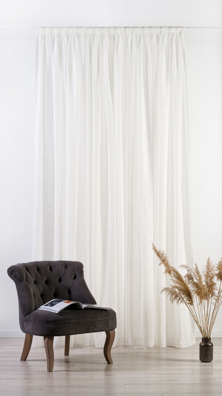 A genfi függöny természetes szálakat utánzó szövetével és finom, klasszikus kiégési mintával rendelkezik. Ez a függöny hatáselem lehet egy bohém vagy klasszikus ihletésű elrendezésben, fényt és dinamizmust kínálva a szobáknak is.