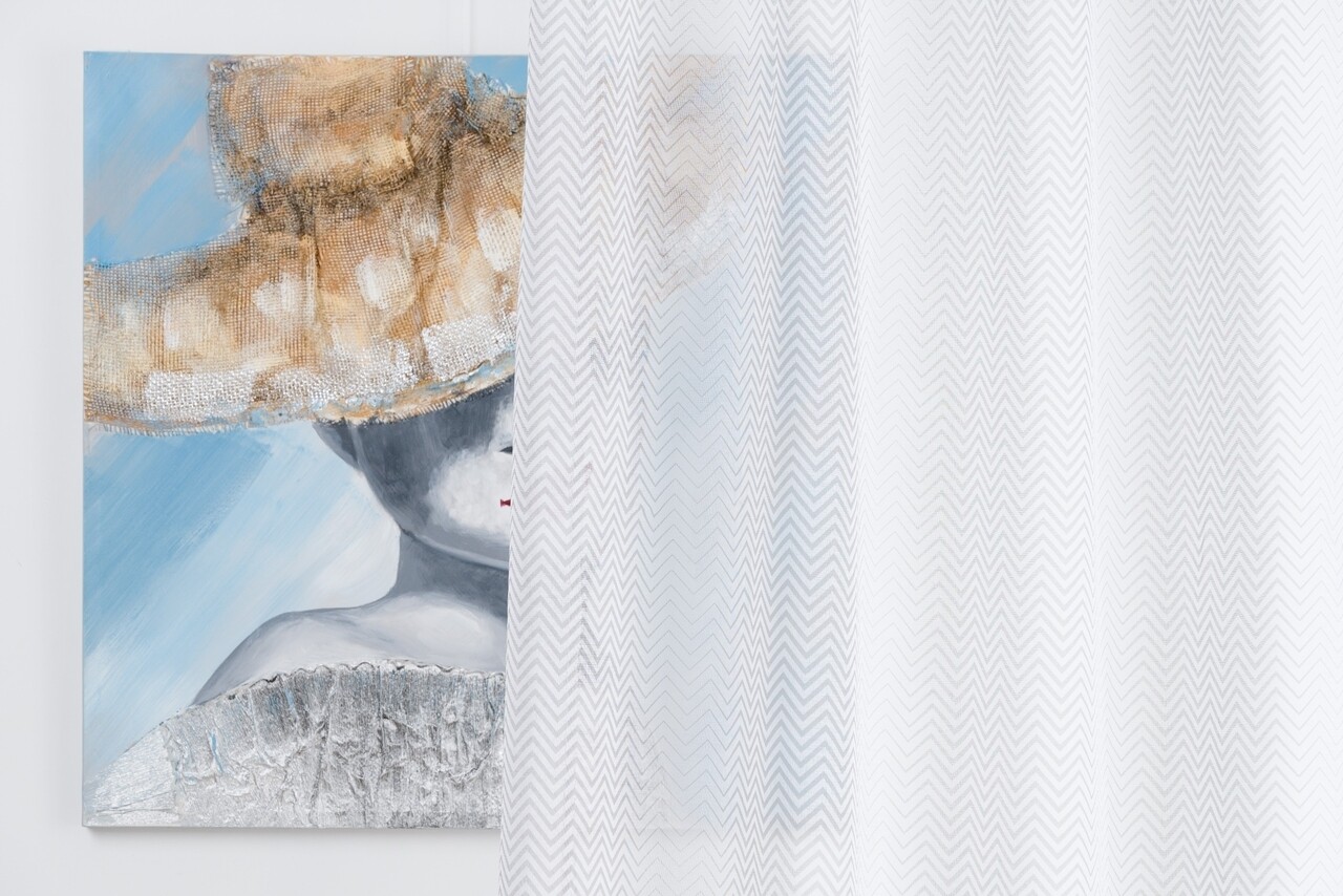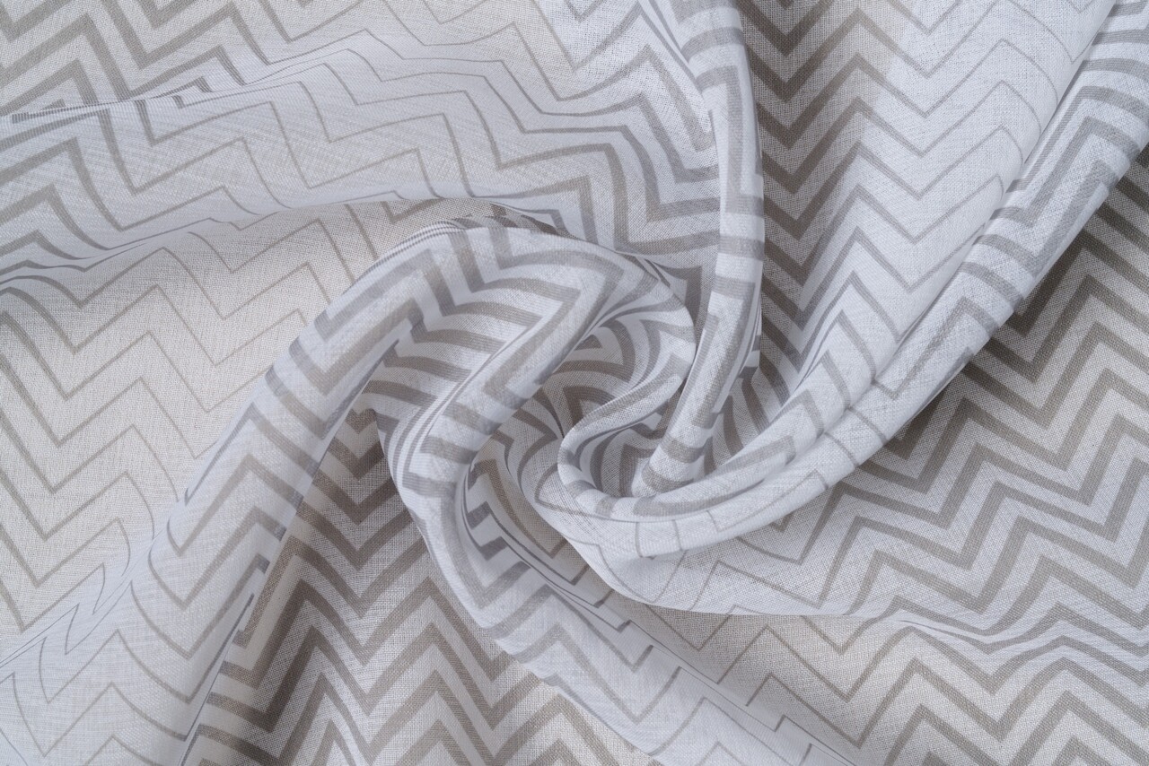 A Sky függöny ismétlődő szögletes mintázattal rendelkezik, és esztétikai eleme lehet a kortárs stílusban tervezett elrendezésnek.