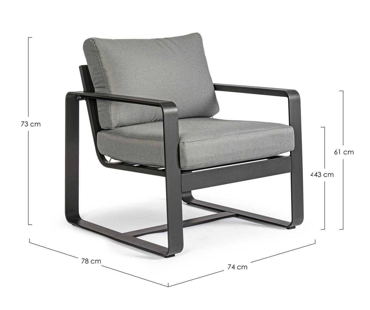 Merrigan Kerti/terasz fotel, Bizzotto, 74 x 78 x 84 cm, alumínium/ofelin szövet, szénszín