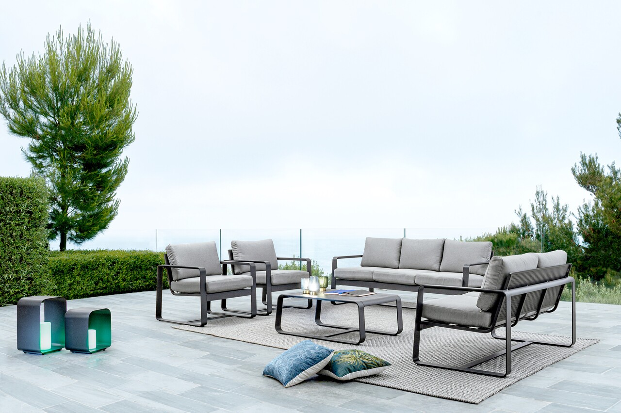 Ülő- és hátpárnák levehető ofelin szövethuzattal (100% polipropilén). Összeszerelést igényel.