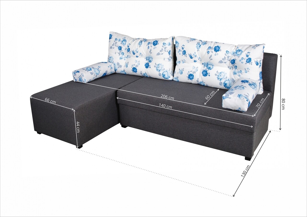 Modena Grey Megfordítható kihúzható kanapé Blue Anemone 206 x 145 x 80 cm tárolóládával
