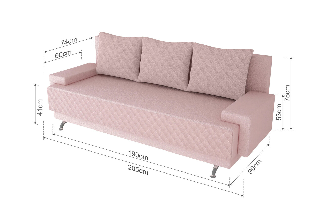 Napoli Pink Kihúzható kanapé, 205x90x86 cm, tárolóládával