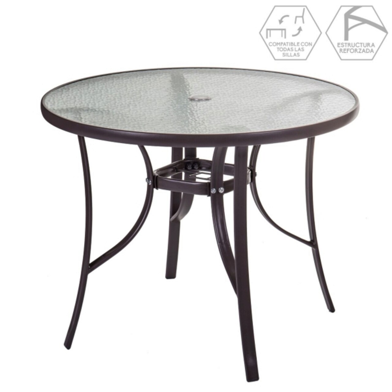 Neila Kerti asztal, Ø 90 x 72 cm, acél/üveg, barna