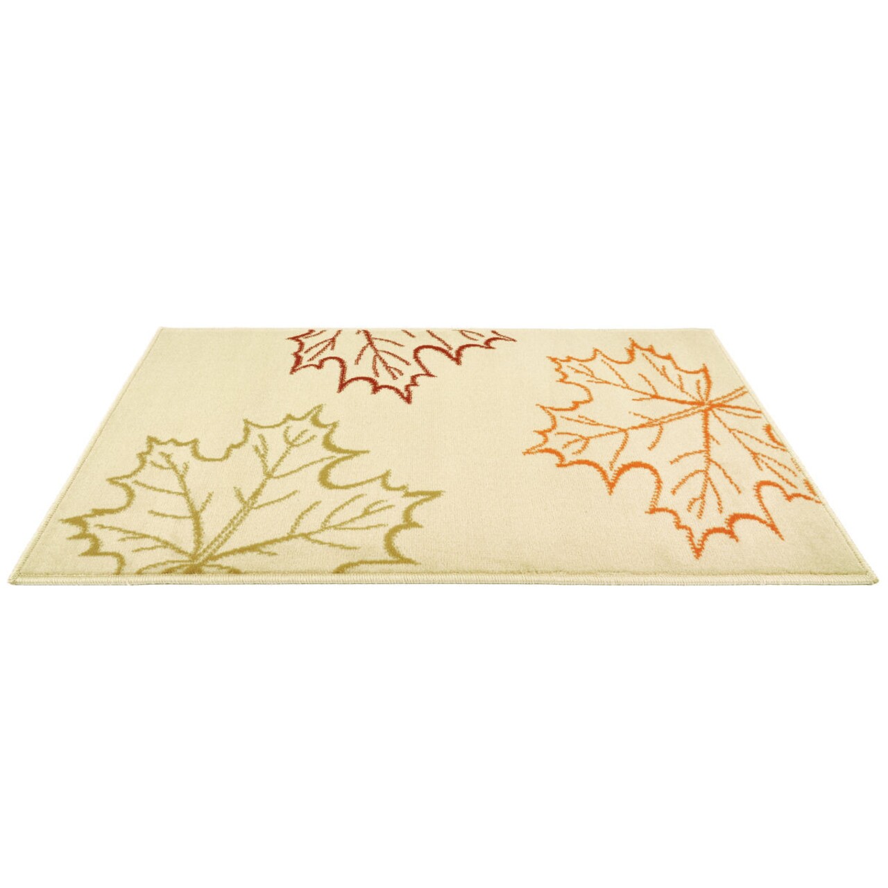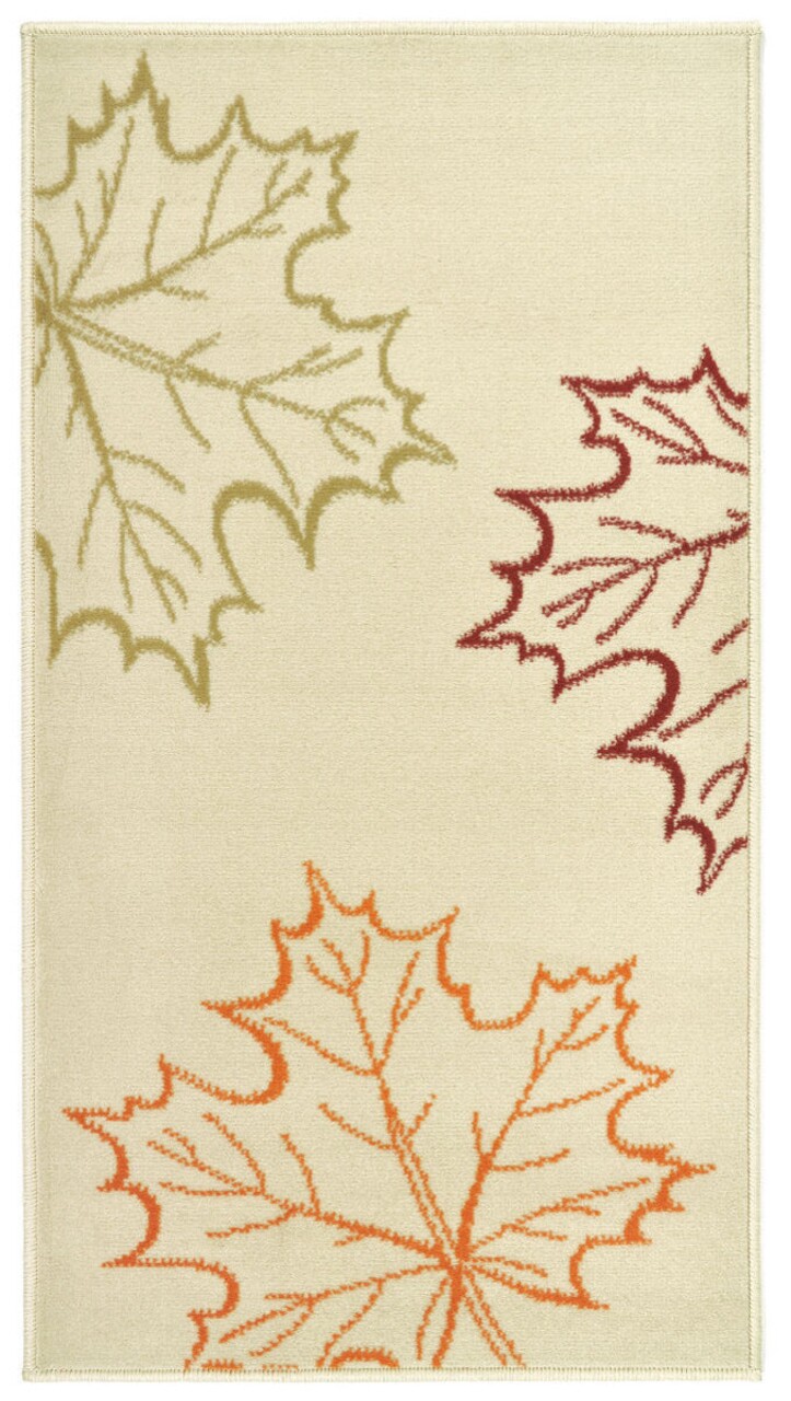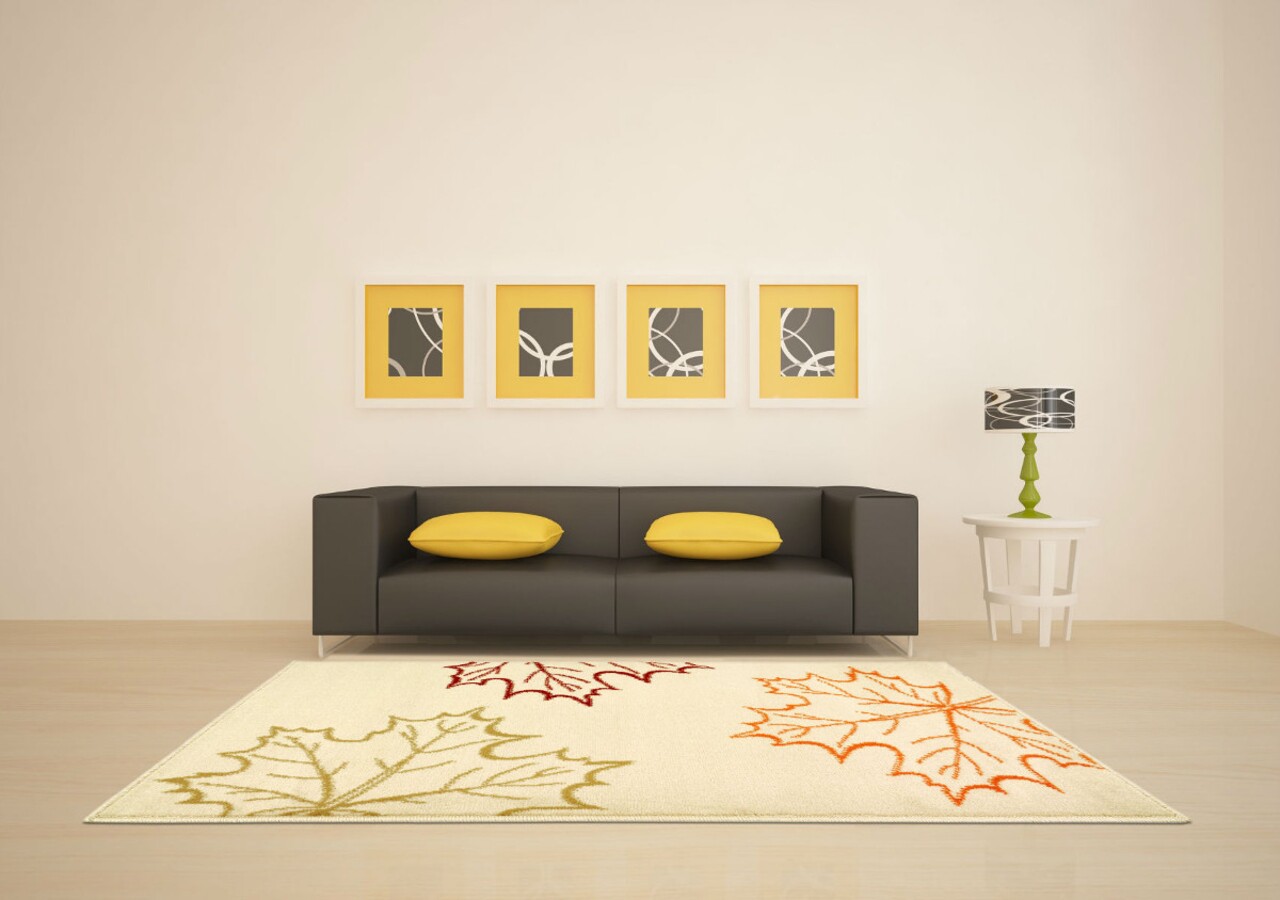 A gyönyörű világos bézs színű szőnyeg gyönyörűen kontúrozott, piros, narancssárga és zöld színű levelekkel egy gyönyörű lakberendezési darab, amely kiegészíti a padló ürességét, és nagy szükség van a kényelemre bármely belső helyiségben, ahol életünk nagy részét töltjük.