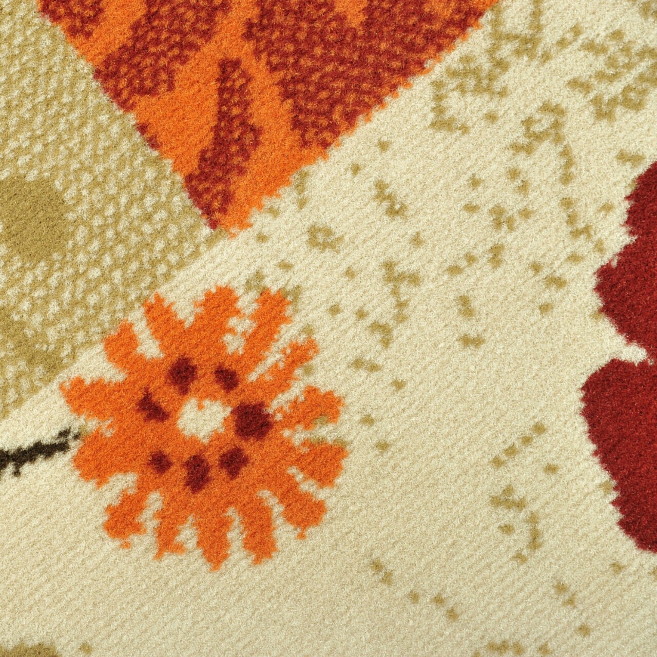 A strapabíró anyagokból álló összetételével és 7 mm vastag bolyhával kitűnik minőségével és kényelmével, és padlófűtéses helyiségekbe is alkalmas. A piros és narancssárga virágok, a geometrikus csíkokkal keretezett stilizált levelek, a piros, narancs, barna és krém meleg színei dinamizmust, optimizmust és melegséget sugallnak. Ez a termék segít növelni a kényelmet a lakótérben, és geometrikus színekkel és formákkal szépen kiegészíti a belsőépítészetet.