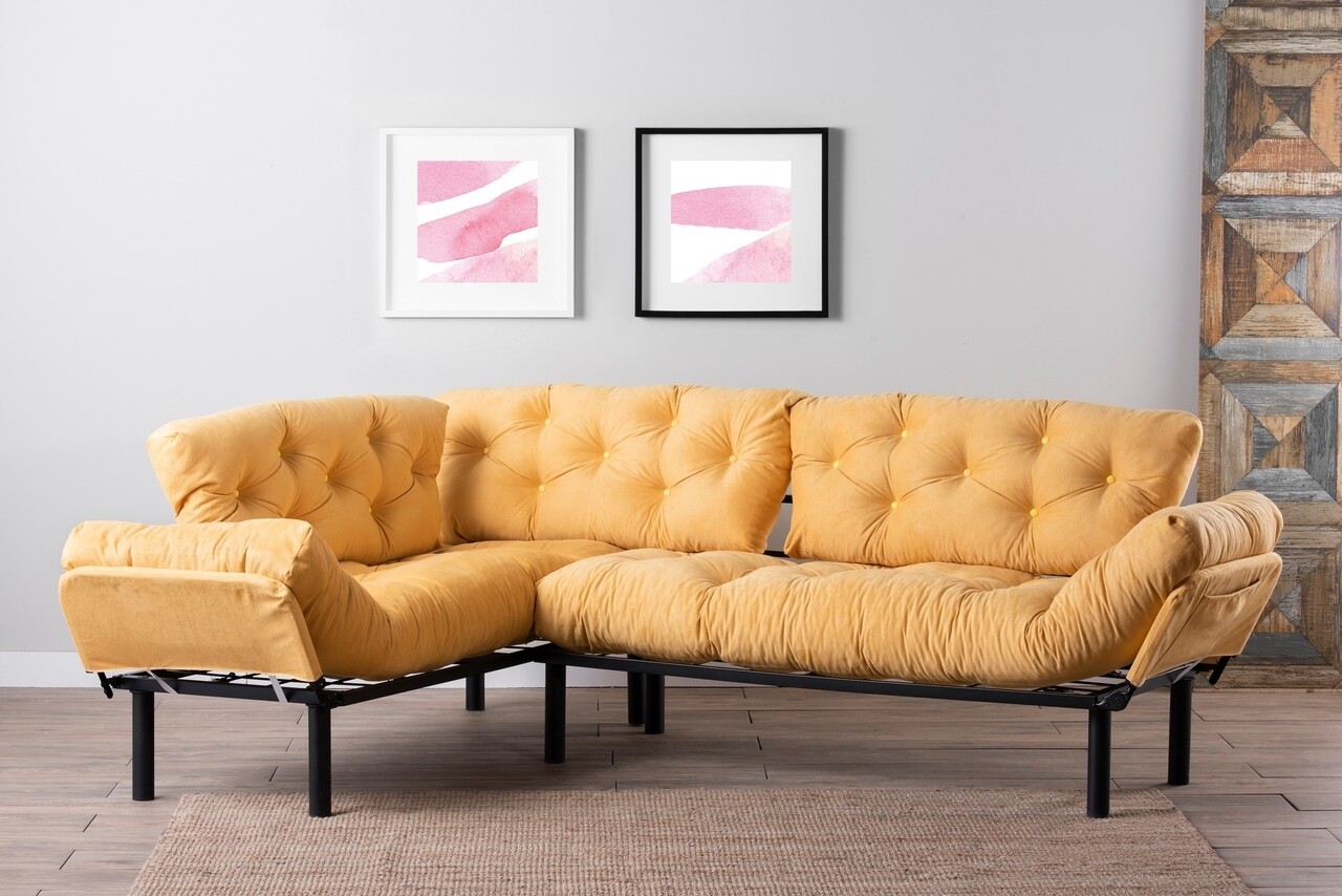 Nitta Corner Sarokkanapé, Futon, fém, mustársárga