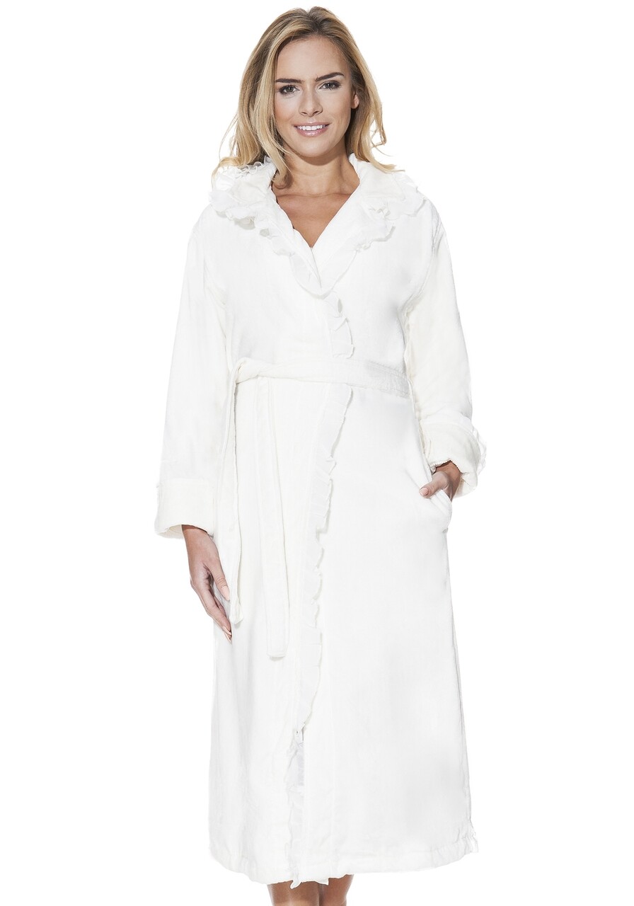 Női köntös, Luisa Moretti, LMS-2062, bambusz / pamut, krém, méret 34/36 - S