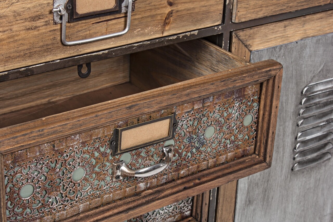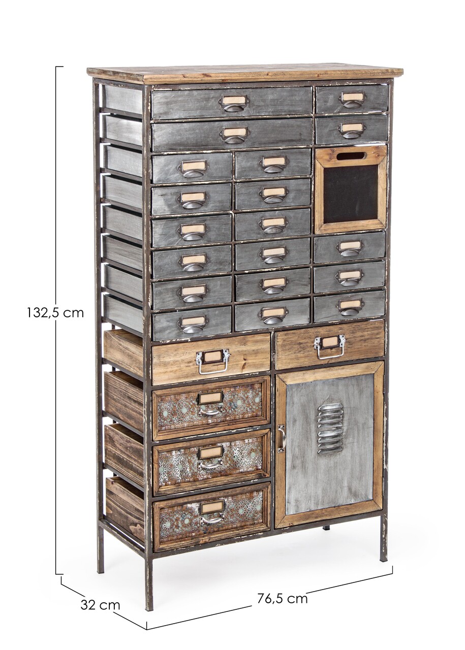 Officina Tálalószekrény, Bizzotto, 76.5 x 32 x 132.5 cm, acél/erdeifenyő
