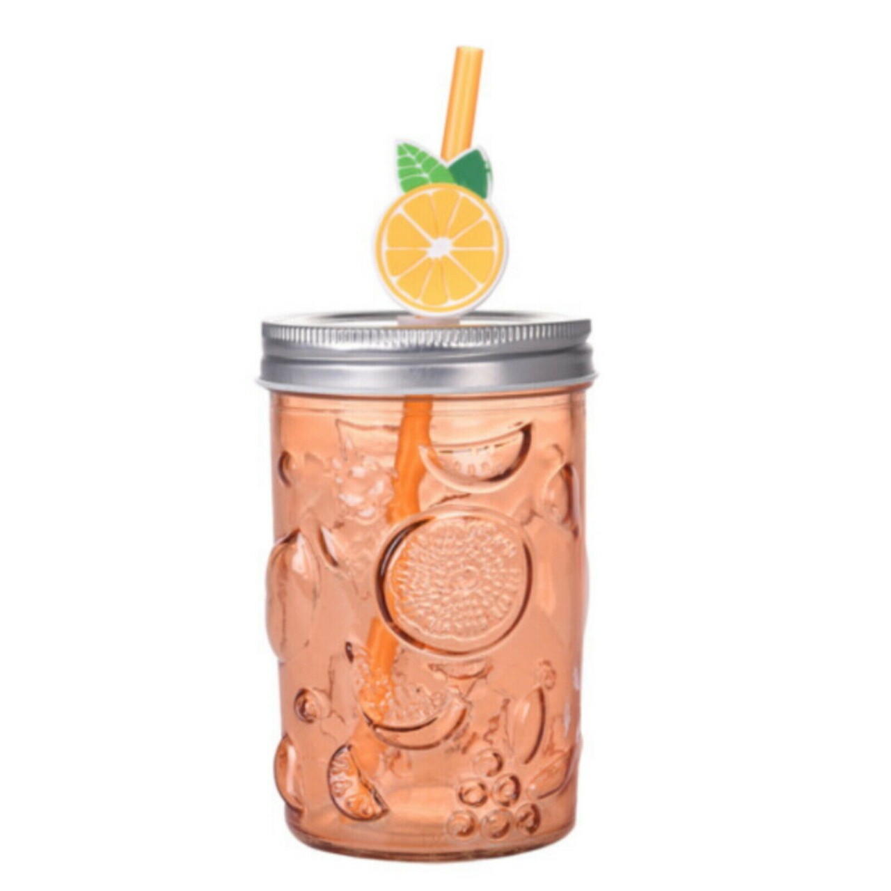 Orange Pohár szívószállal, 500 ml, 10.5x11 cm, üveg, narancssárga