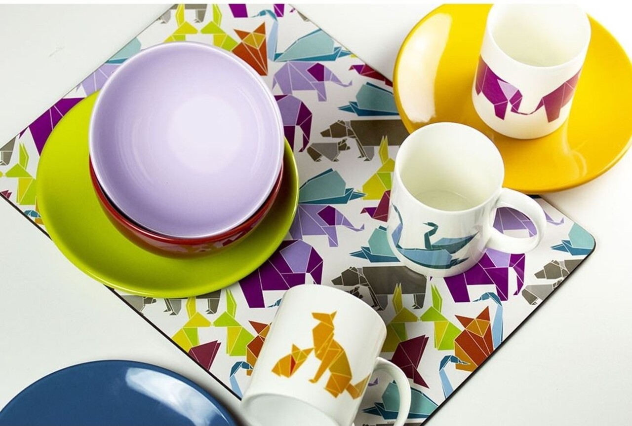Minőségi porcelán csésze 350 ml űrtartalommal. A Happy bögrék különleges mintáit az origami ihlette, a hagyományos japán művészet, amely a papírt különféle mintákká hajtogatja. Ezek élénk színekben pompáznak, amelyek kétségtelenül megszépítik konyháját és asztalát. Mikrohullámú sütőben használhatók és mosogatógépben tisztíthatók.