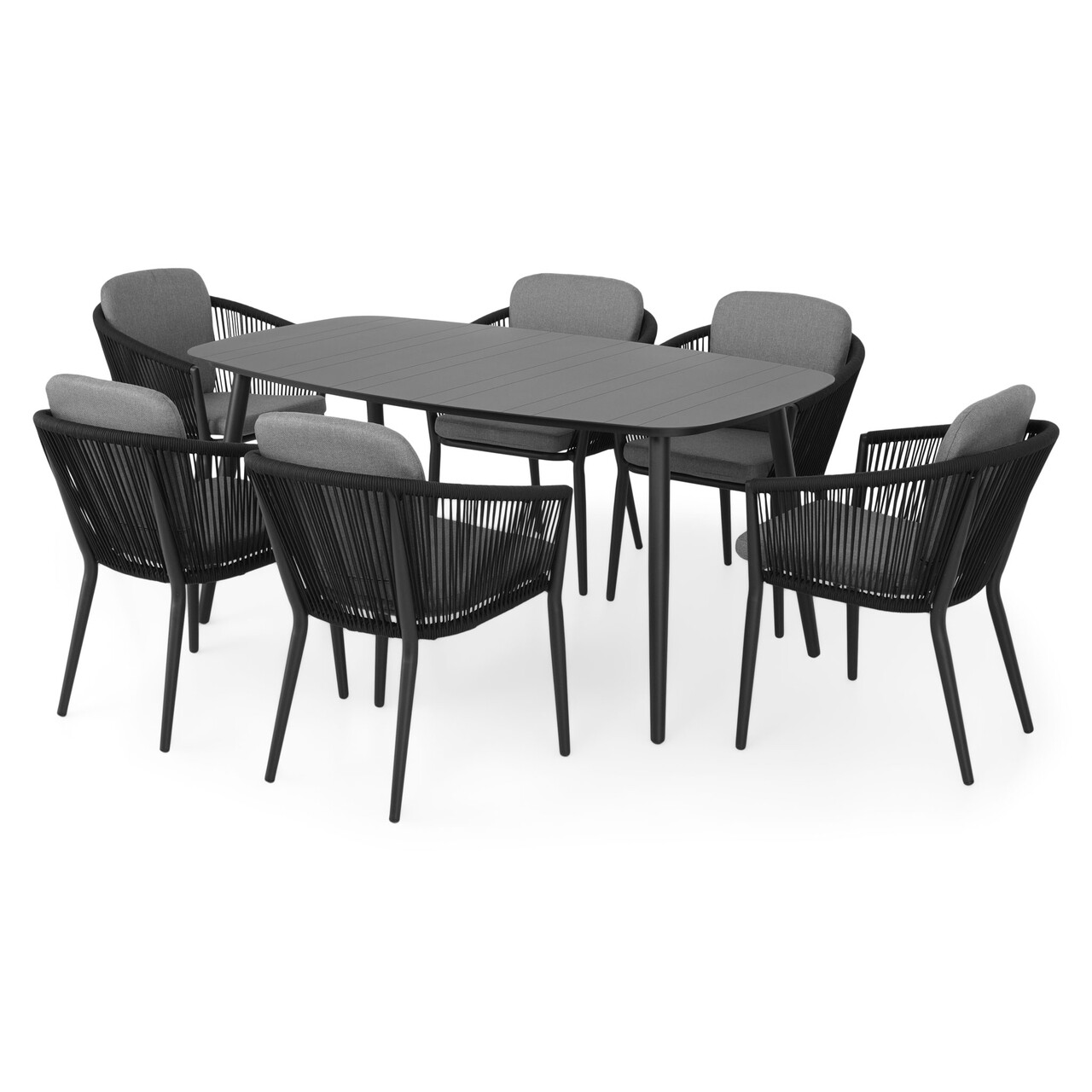 Orso 6 db Szék és asztal, alumínium, fekete/szürke