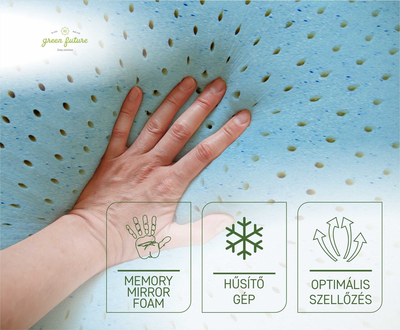 A Memory Mirror Form® hideg gélrészecskéket tartalmaz, amelyek megakadályozzák a túlmelegedést alvás közben.
