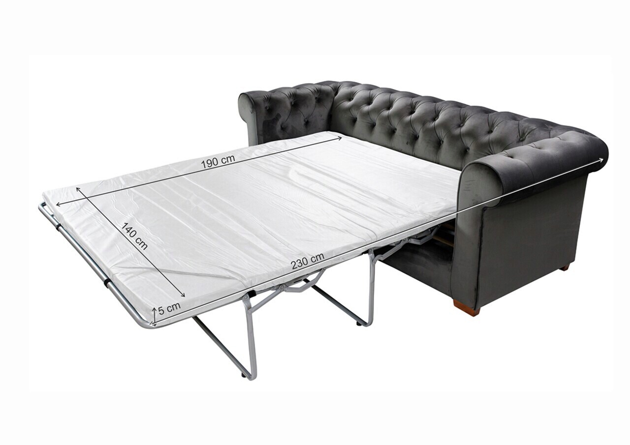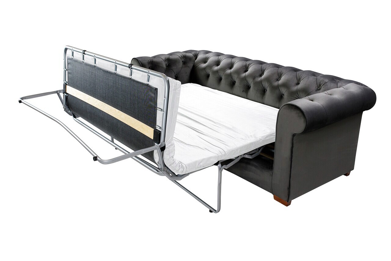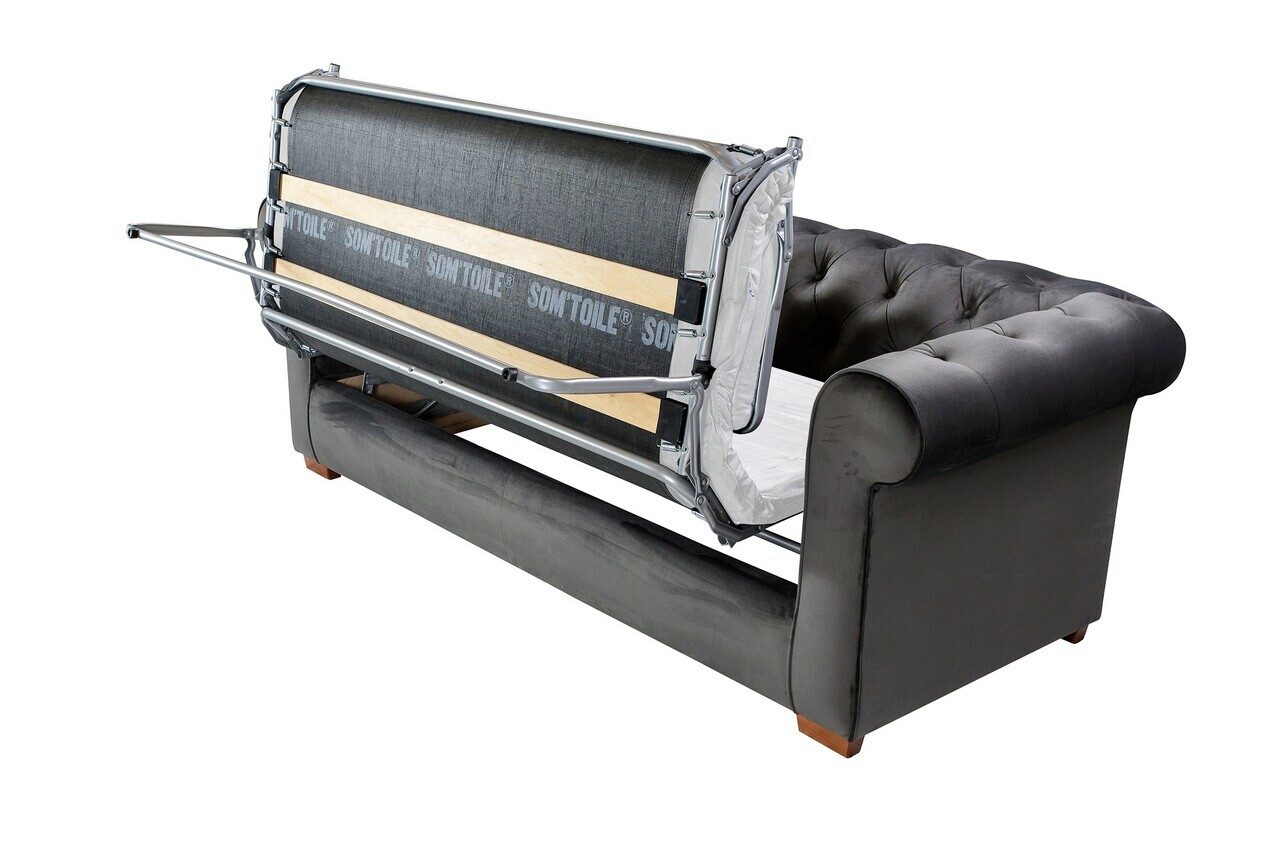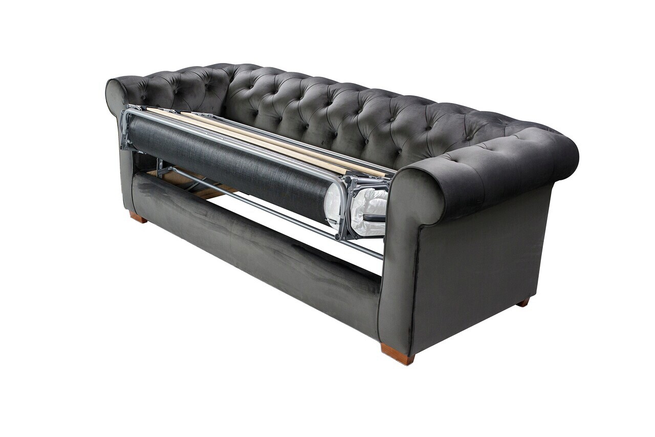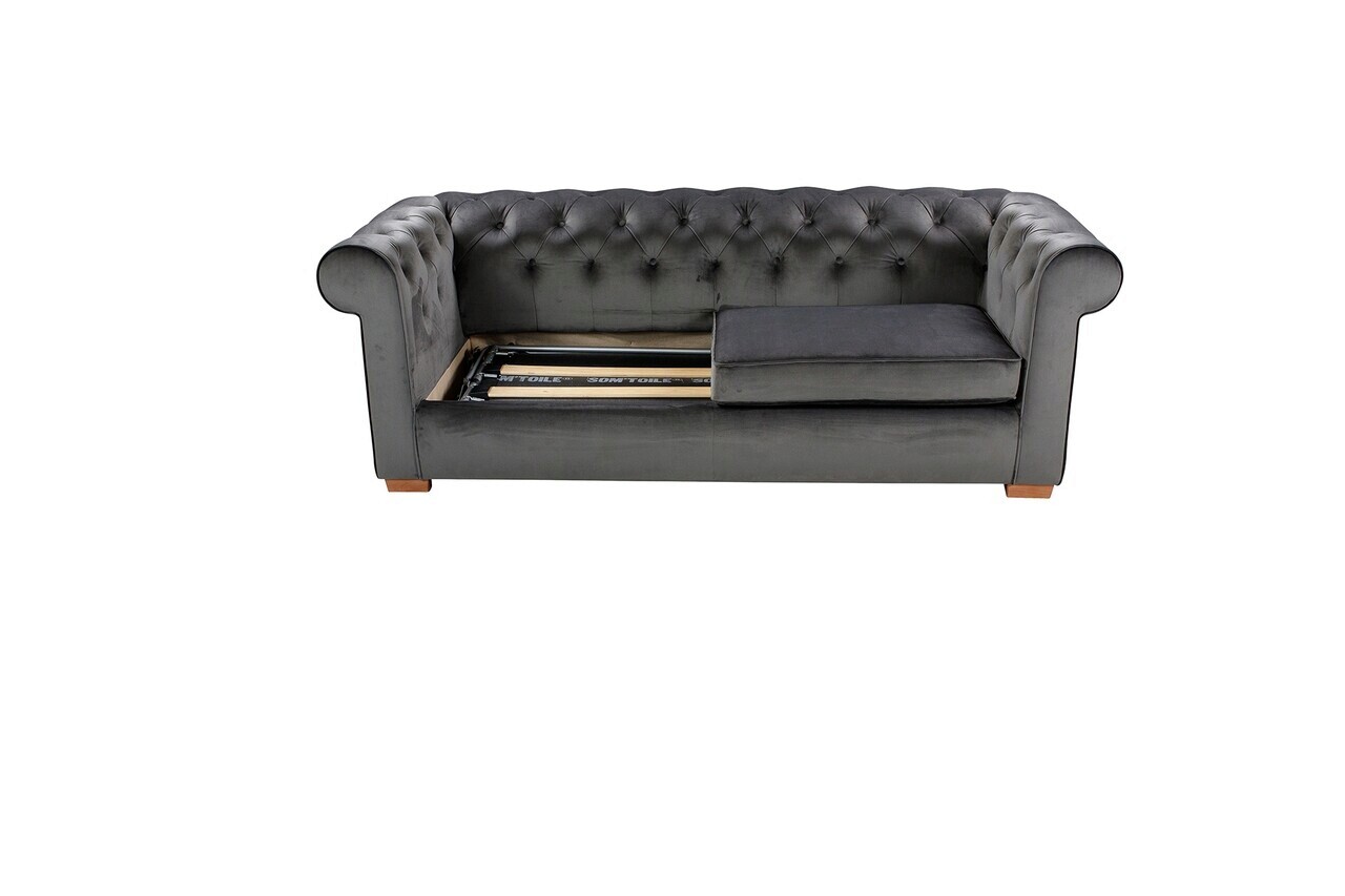 Oxford Chesterfield Kihúzható kanapé, 3 személyes 88x216x75 cm, antracitszürke