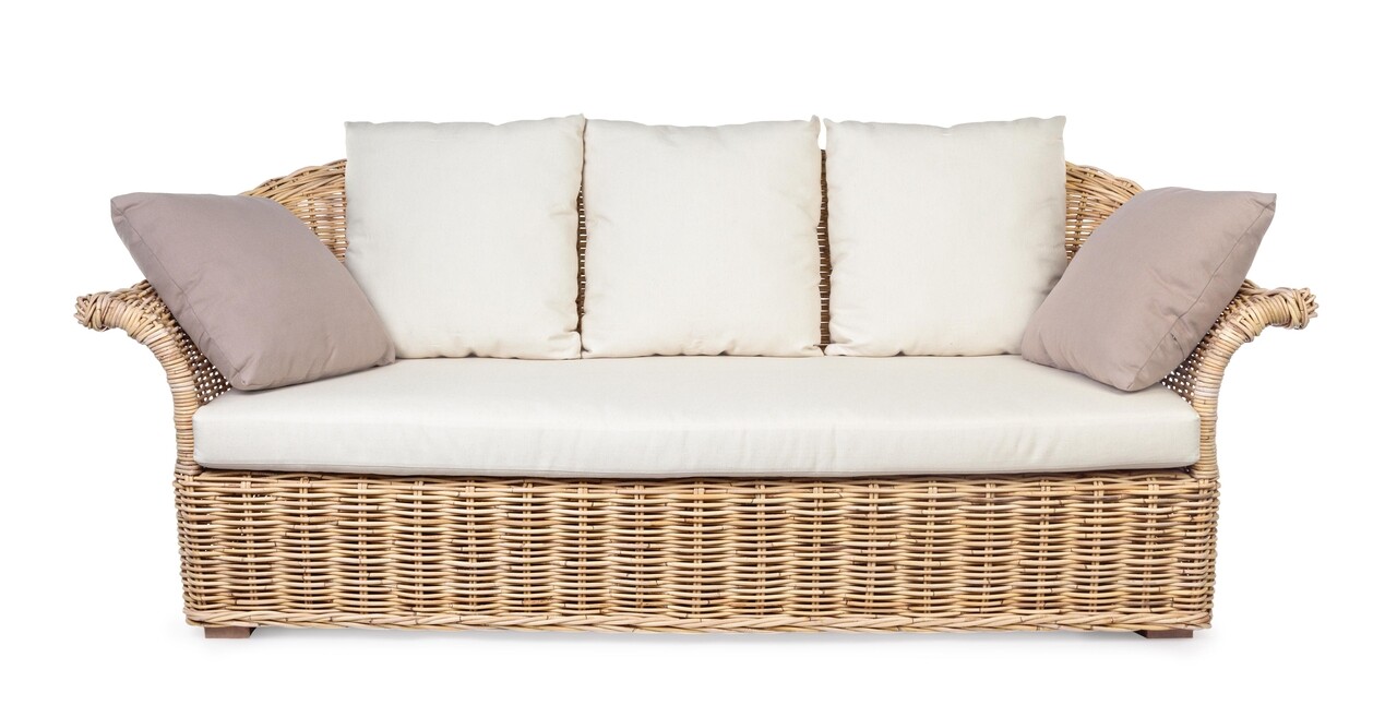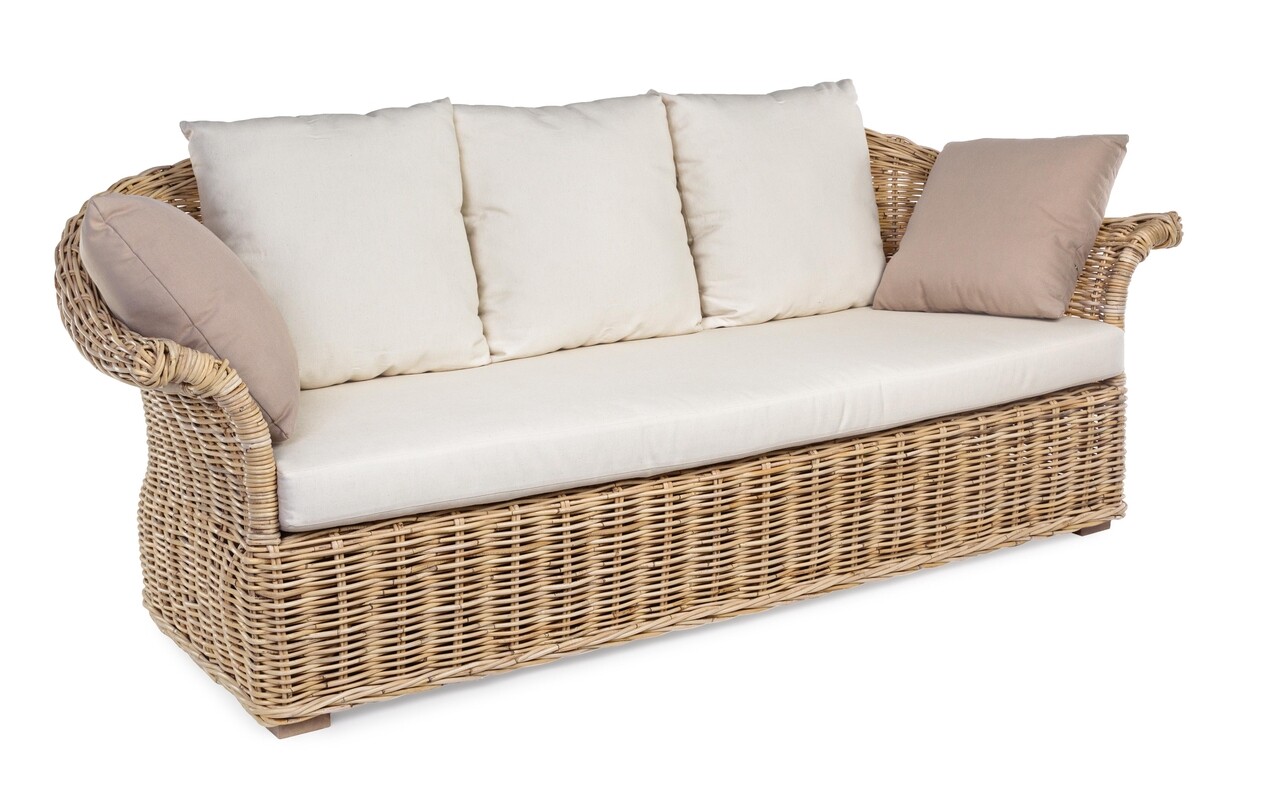 Pamplona Háromszemélyes kerti kanapé, Bizzotto, 202x77x80 cm, rotáng/polipamut
