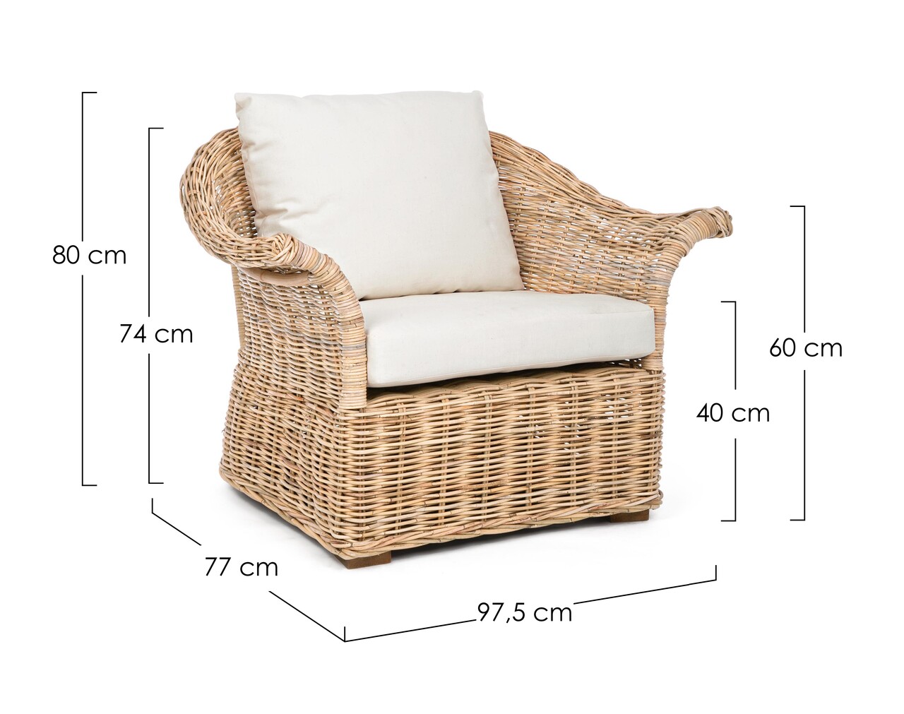 Pamplona Kerti fotel, Bizzotto, 97.5x77x80 cm, rotáng/polipamut
