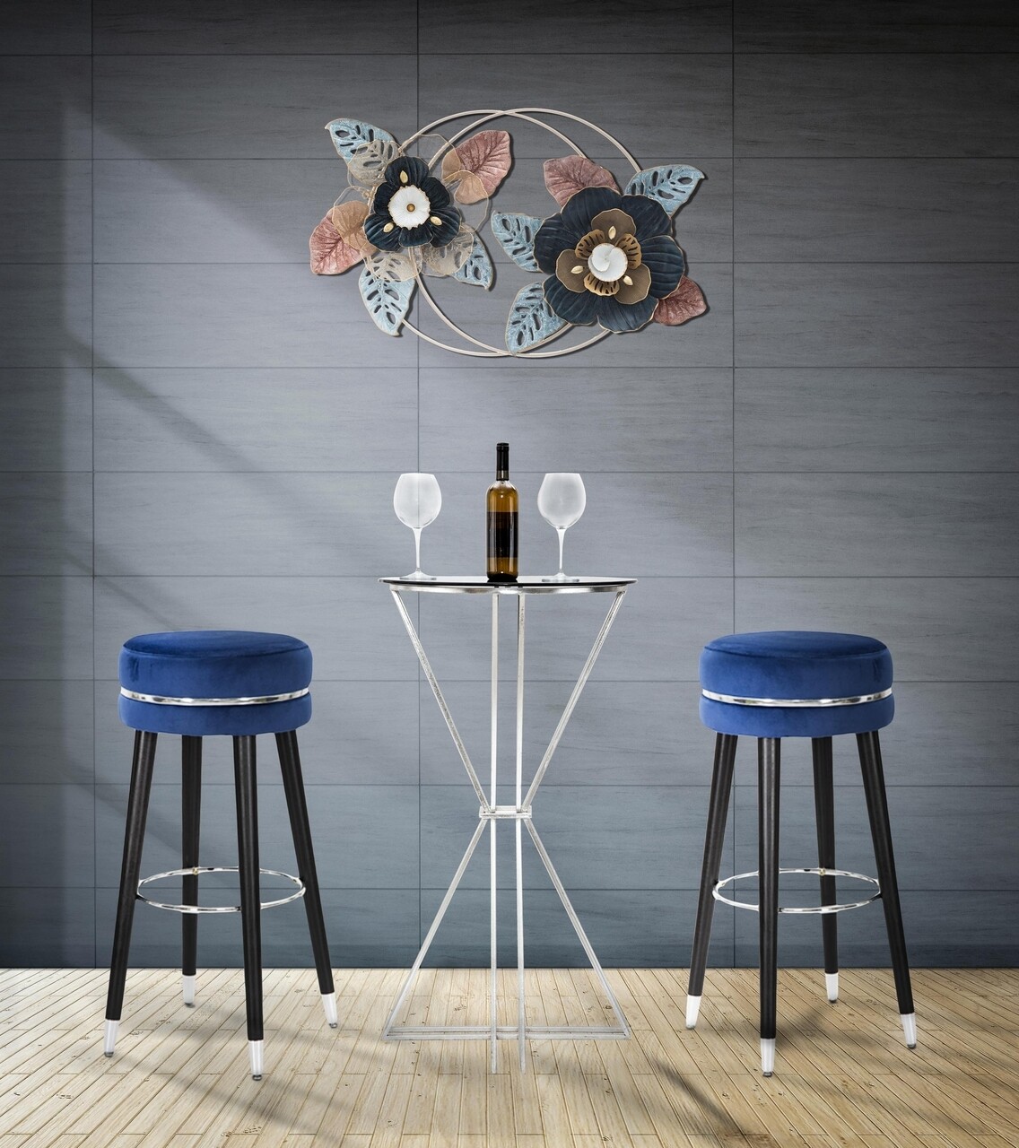 Paris Szék, Mauro Ferretti, Ø 35x74 cm, erdeifenyő/poliészter, kék/ezüstszín