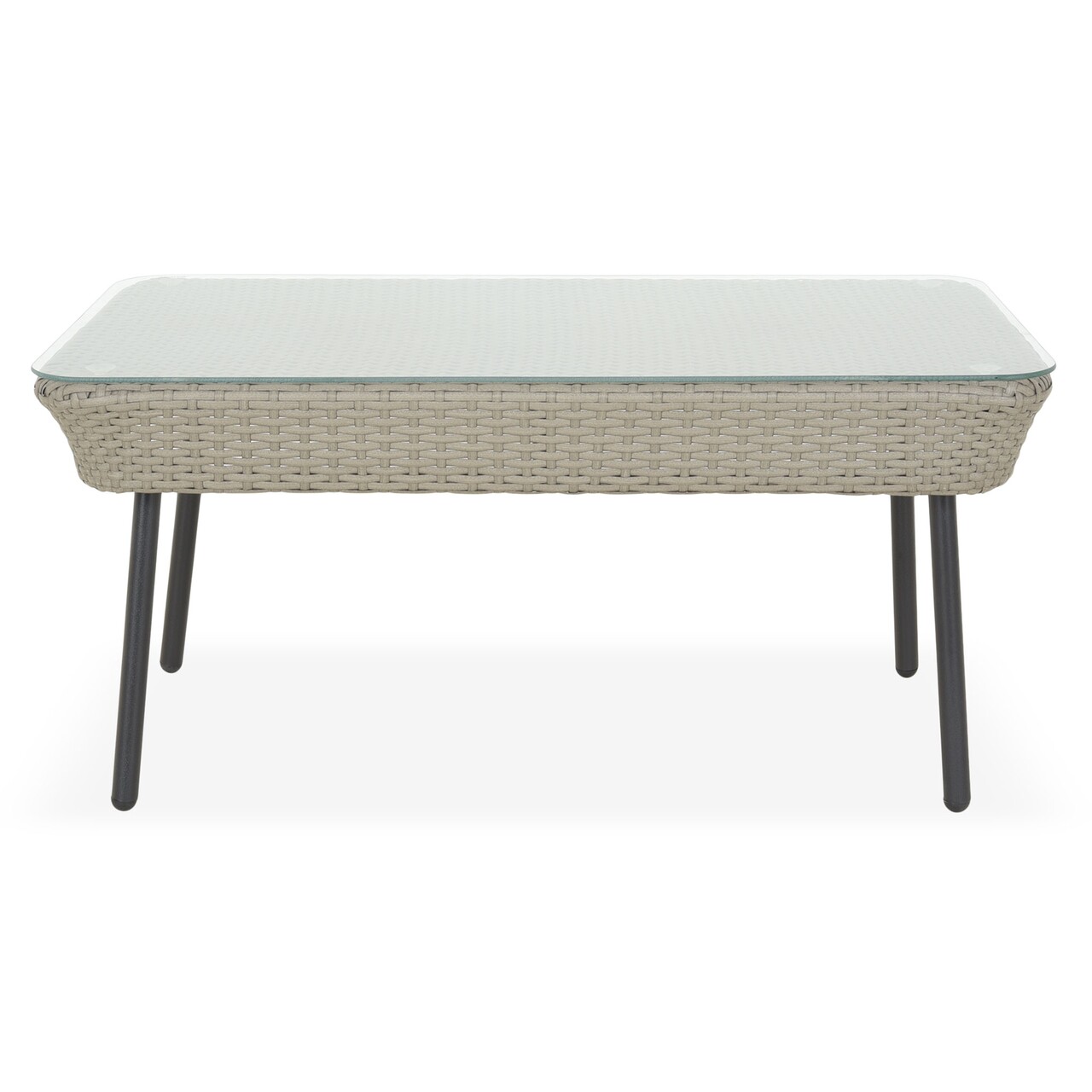 Tömör acélszerkezetből készült, elektrosztatikusan festett és UV-kezelt, rattant utánzó szintetikus szálakkal fonott. Tartalmazza a nedvesség és az UV-sugarak ellen védelmet nyújtó Olefin-szövettel borított párnákat. Az asztallap edzett üvegből készült.