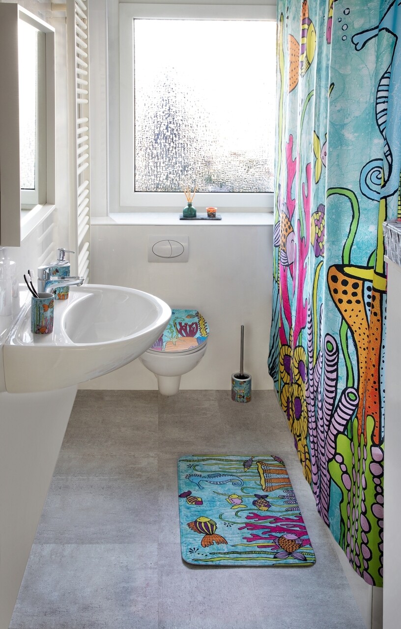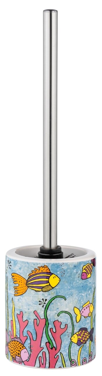 Perie pentru toaleta cu suport, Wenko, Ocean Life, 10 x 39 x 10 cm, ceramica, multicolor