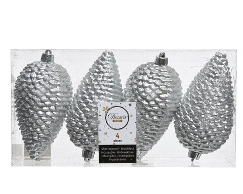Pinecone 4 db Díszgömb, Decoris, műanyag, ezüstszín