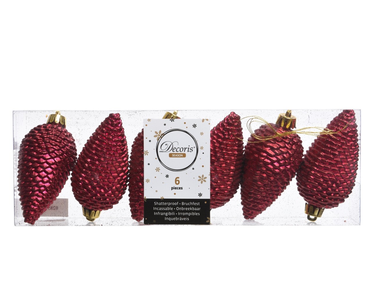 Pinecone Oxblood 6 db Díszgömb, műanyag, piros