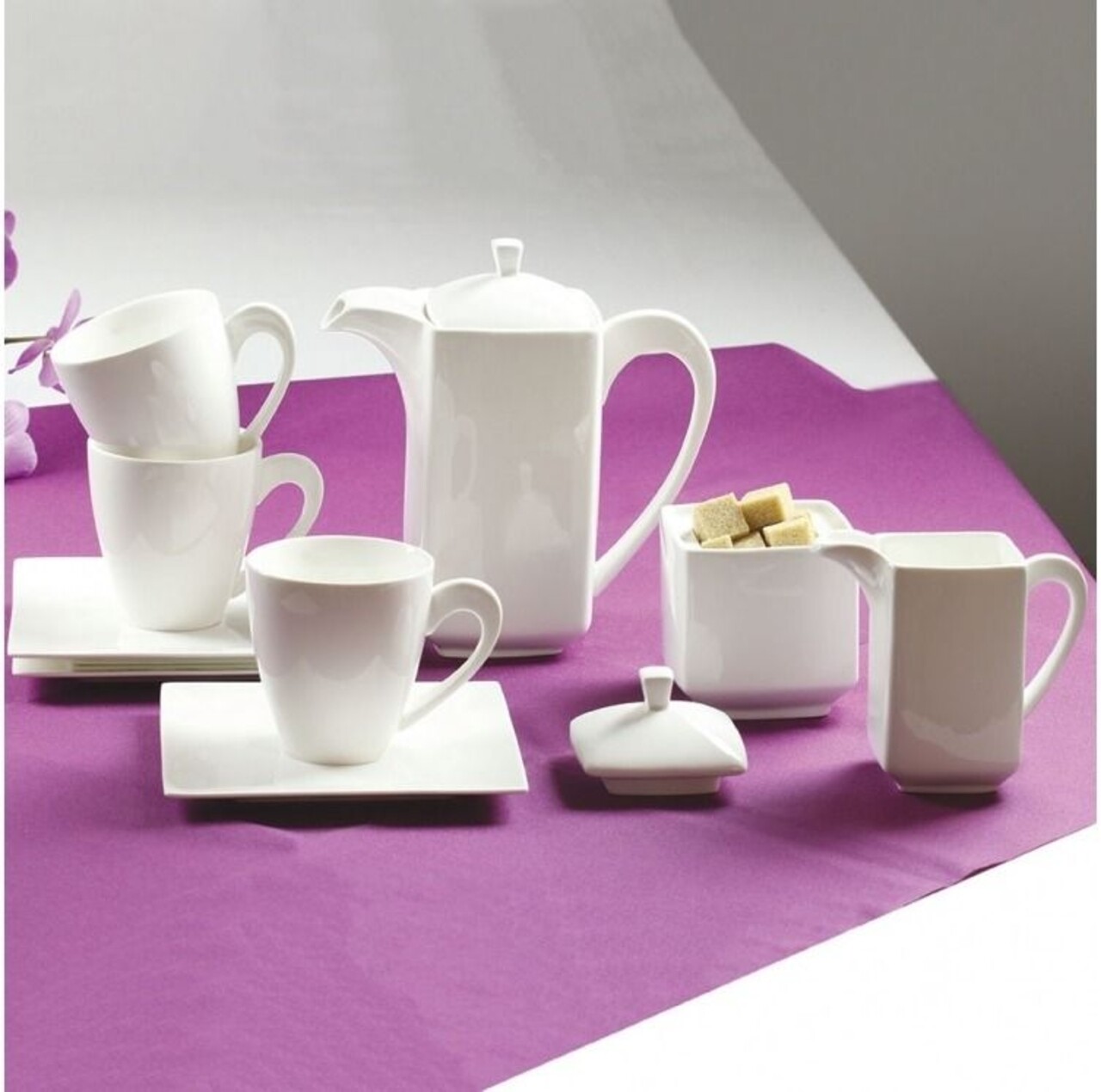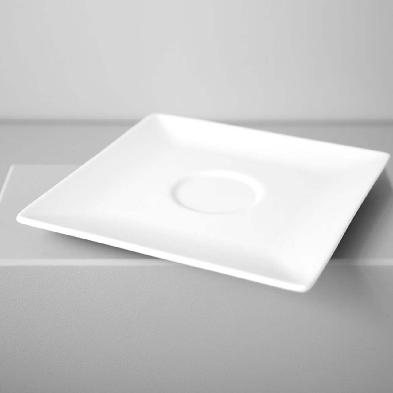 Kiváló minőségű porcelán csészealj. A szögletes forma modern dizájnt mutat, de a szín megtartja eleganciáját. Mikrohullámú sütőben és mosogatógépben mosható.