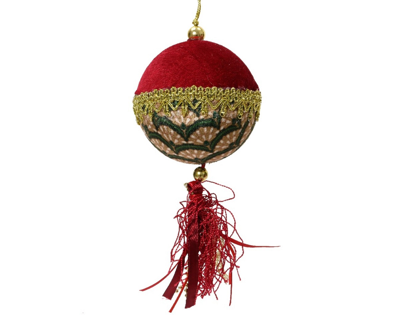 Red top Díszgömb, Decoris, Ø8 cm, poliészter, piros/zöld