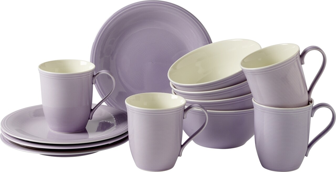 Reggelizőkészlet 12 darab, Like Villeroy & Boch, Color Loop Blueblossom, prémium porcelán, lila