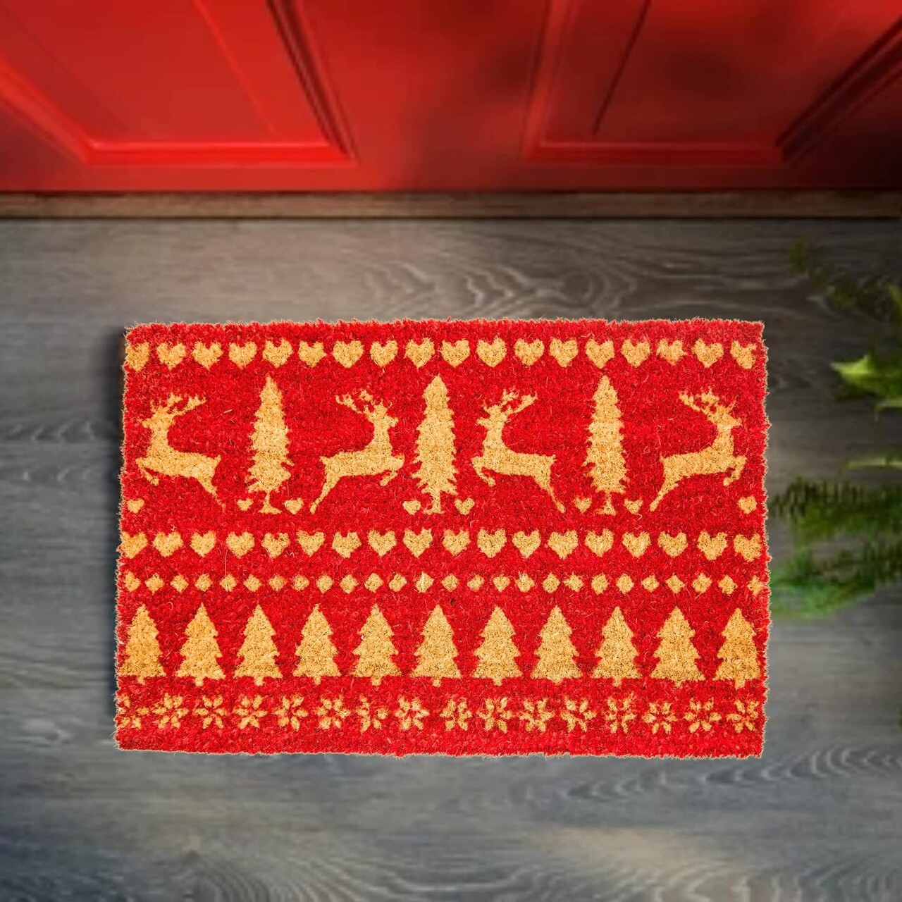 Reindeer Szőnyeg, 39x59 cm, kókuszrost, piros
