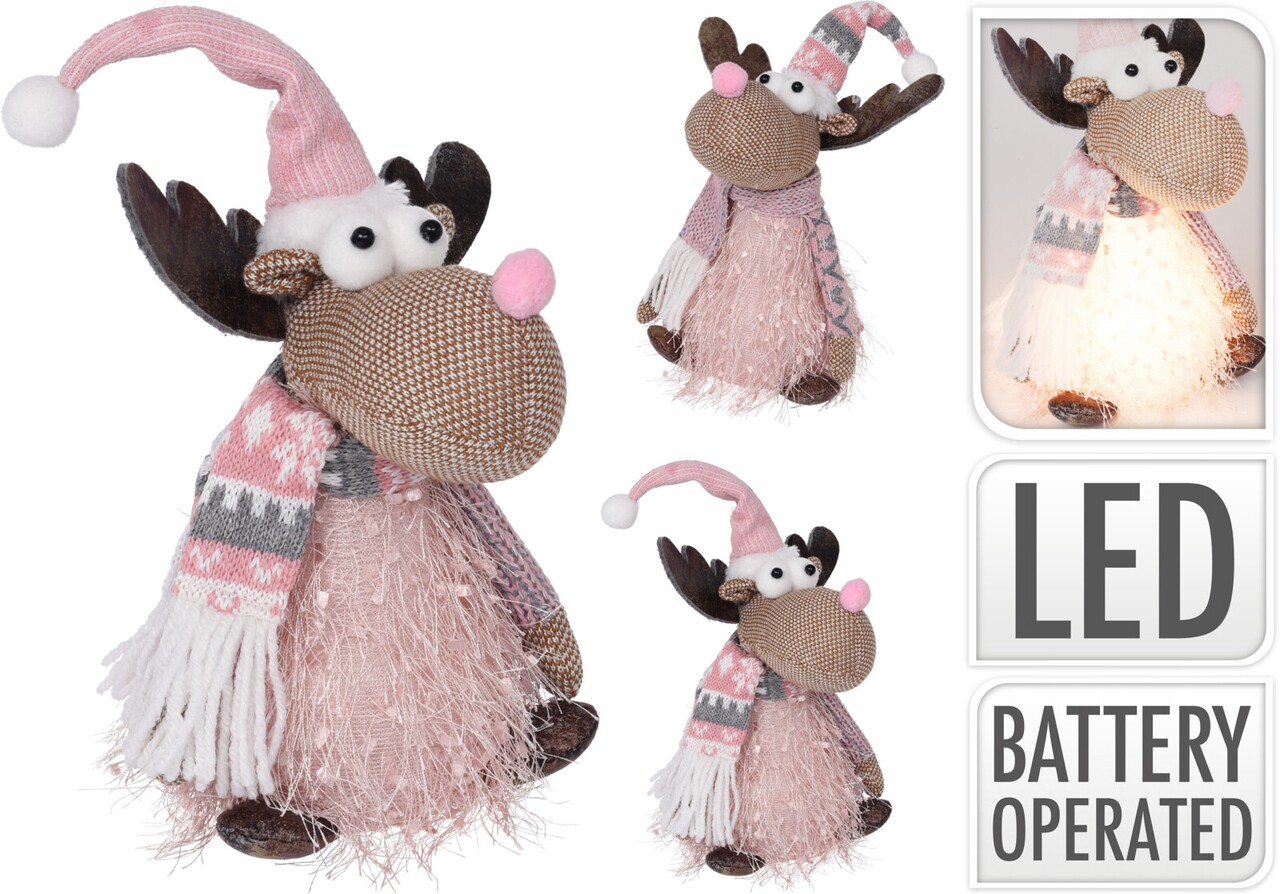 Reindeer w patterned scarf Fénydekoráció, 14x22 cm, poliészter, rózsaszín/szürke