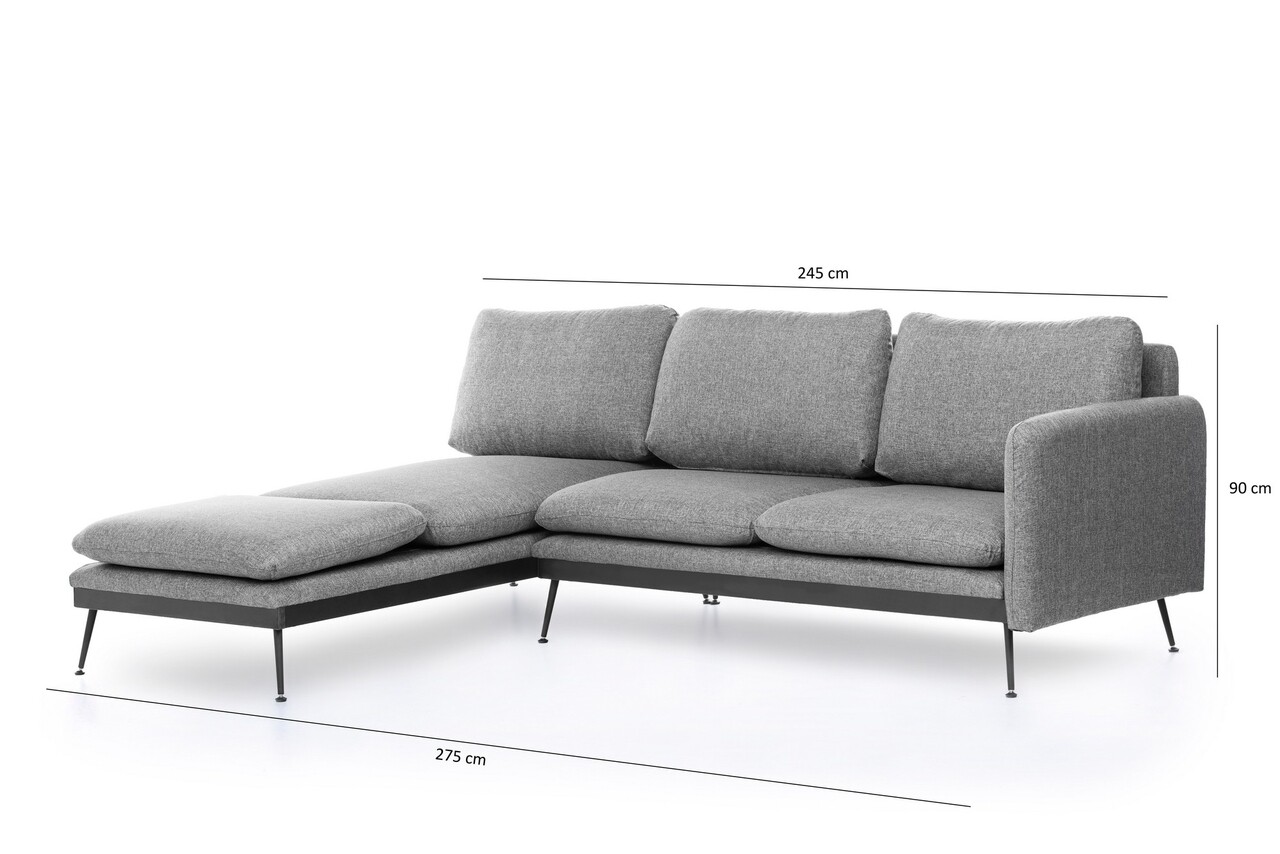 Reya Corner Sarokkanapé, Futon, 275x190x90 cm, fém, szürke