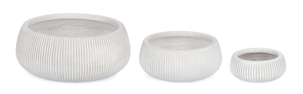 Ribbed 3 darabos Kültéri virágcserép szett, Bizzotto, Ø43 x 18 cm, üvegszál és agyag, fehér