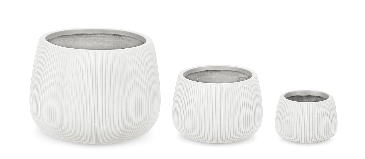 Ribbed 3 darabos Kültéri virágcserép szett, Bizzotto, Ø50 x 36 cm, üvegszál és agyag, fehér