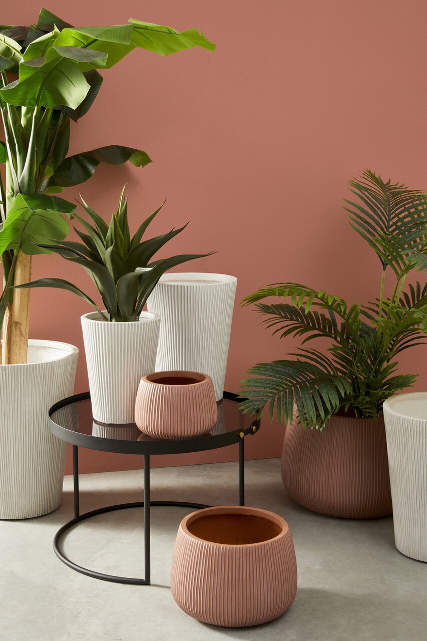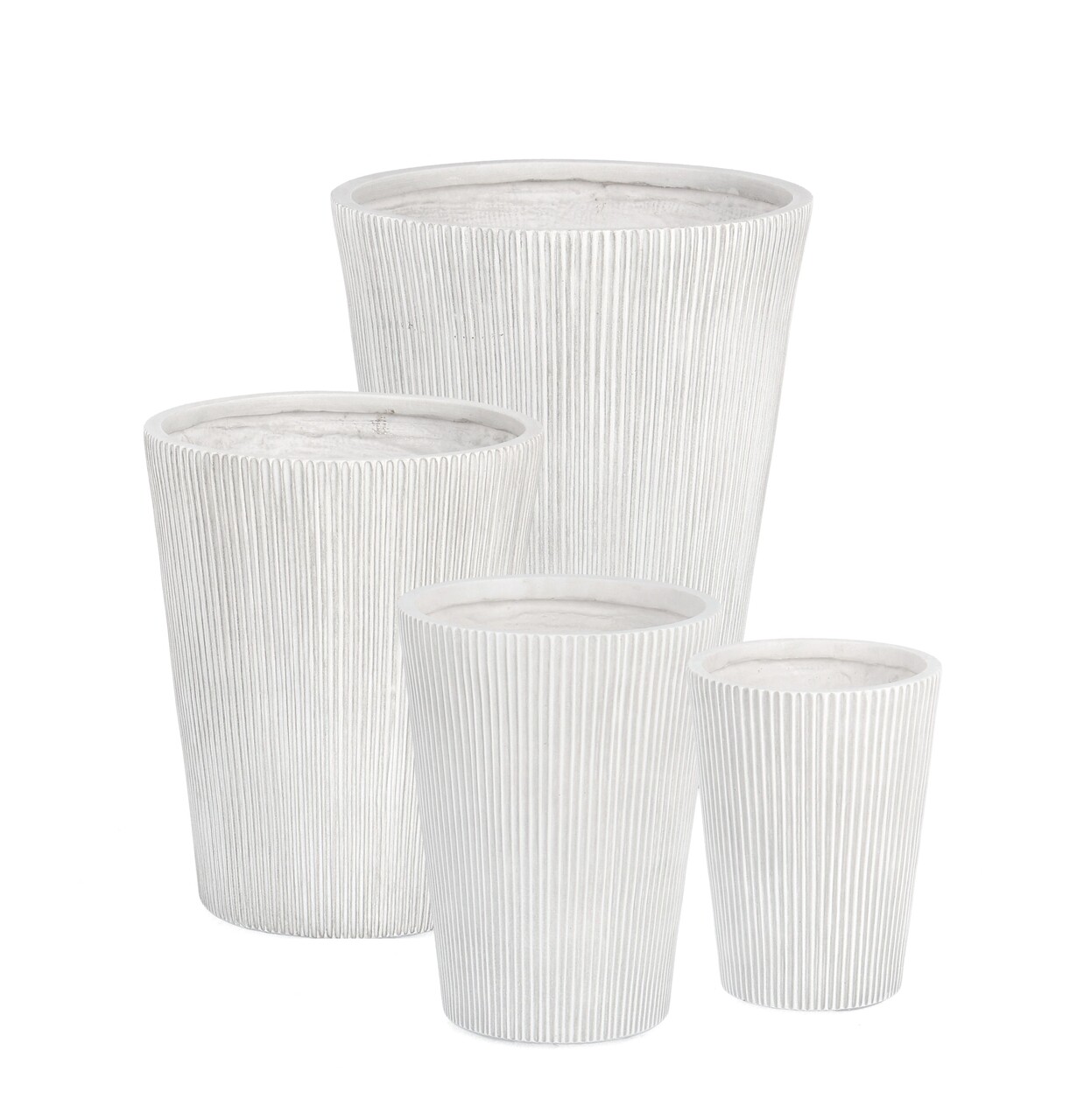 Ribbed 4 darabos Kültéri virágcserép szett, Bizzotto, Ø44 x 55 cm, üvegszál és agyag, fehér