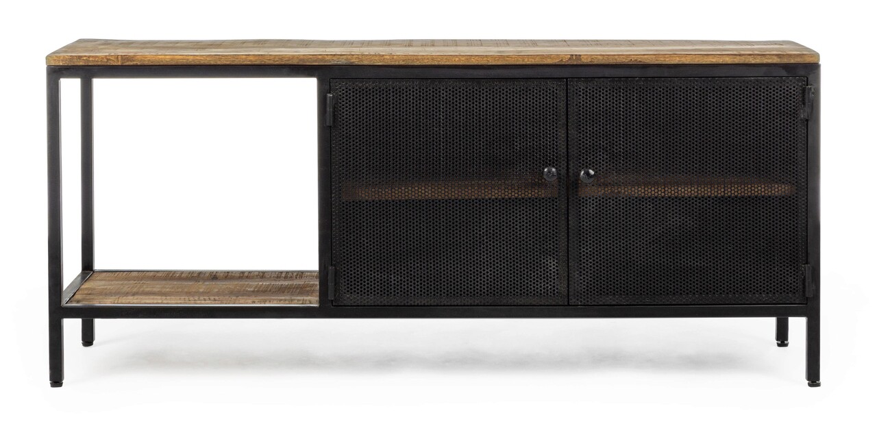 Roderic TV Komód 2 ajtóval, Bizzotto, 120x35x52 cm, acél/mangófa