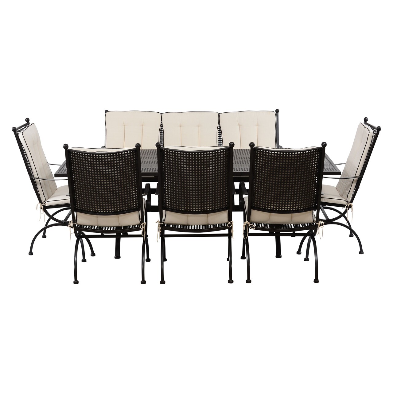 Tömör acélszerkezetből és elektrosztatikusan festett kovácsoltvas elemekből készült. Pamut és poliészter szövet párnákat tartalmaz.