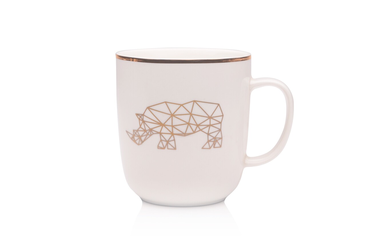 Ronnie Rhino bögre, Sabichi, 450 ml, porcelán, fehér / arany