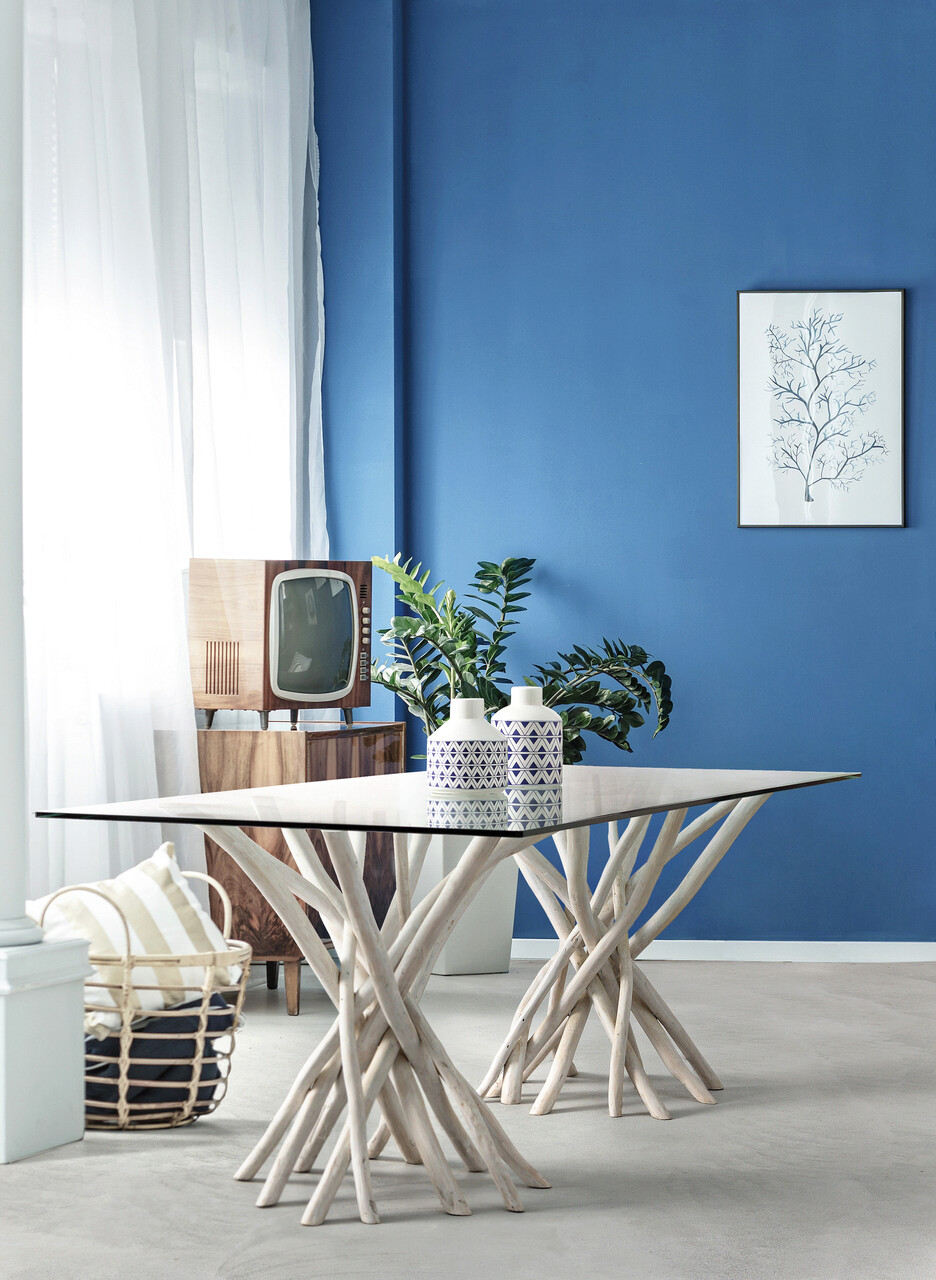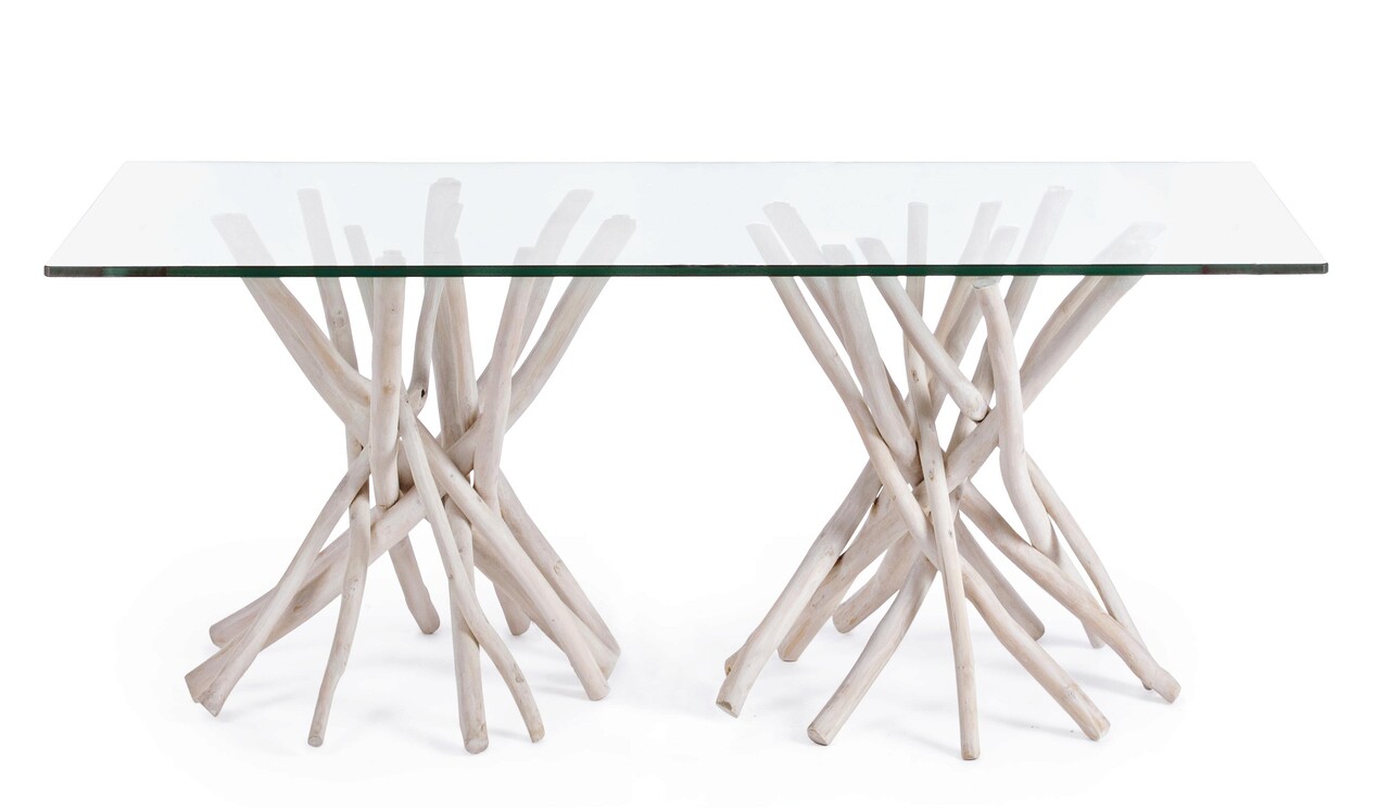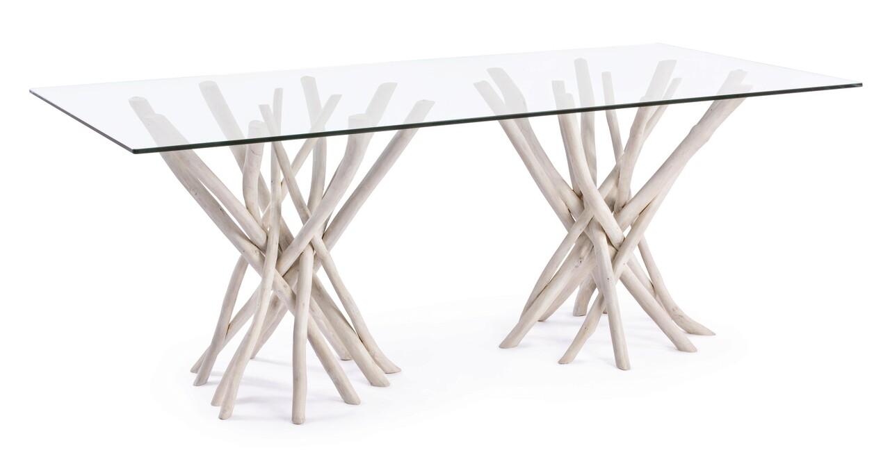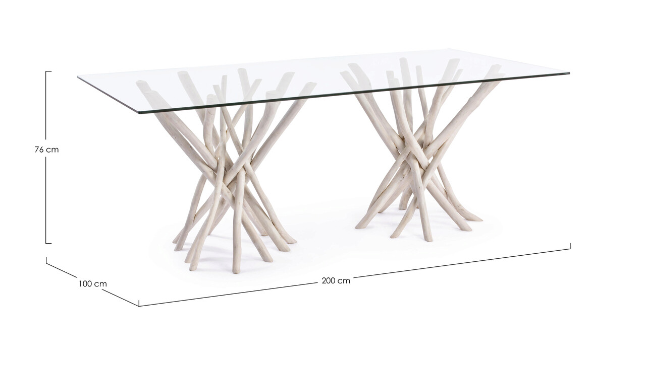 Sahel Asztal, Bizzotto, 200 x 100 x 76 cm, tíkfa ágak/edzett üveg