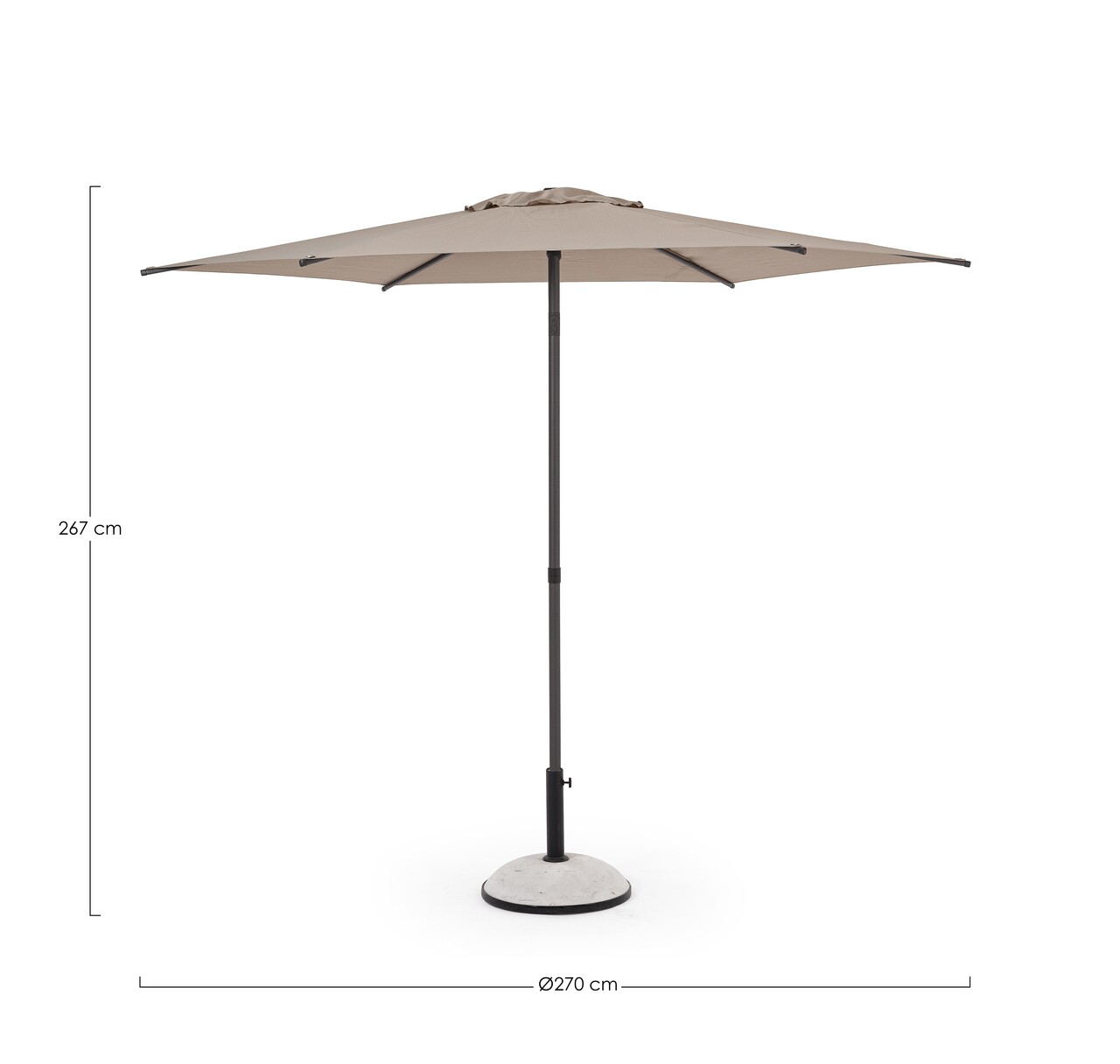 Samba Kerti/terasz napernyő, Bizzotto, Ø 270 cm, oszlop Ø 38 mm, acél/poliészter, szürke