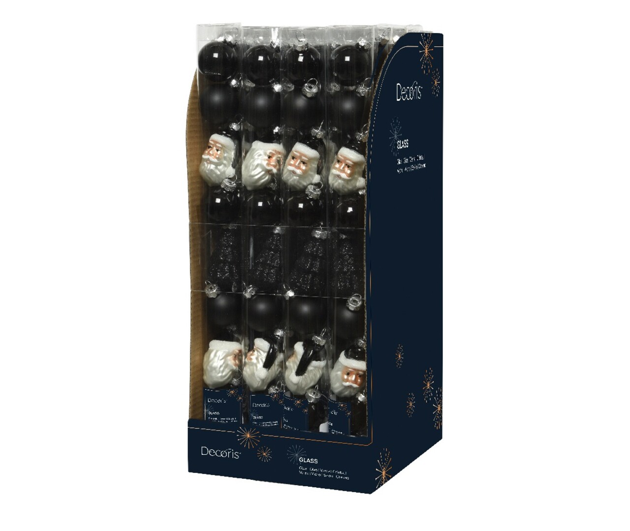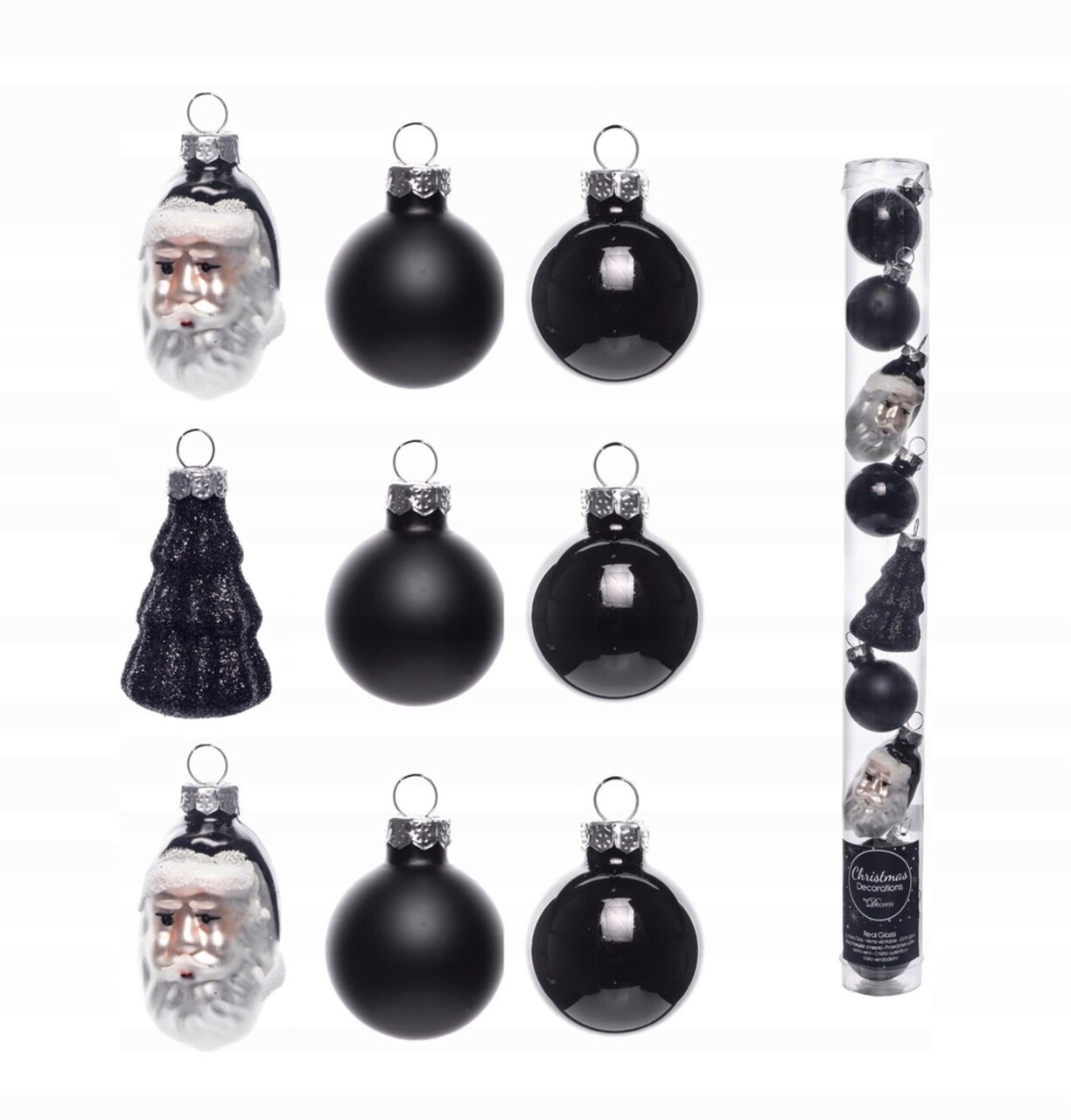 Santa Claus Tartó 9 díszgömmel, Decoris, üveg, fekete