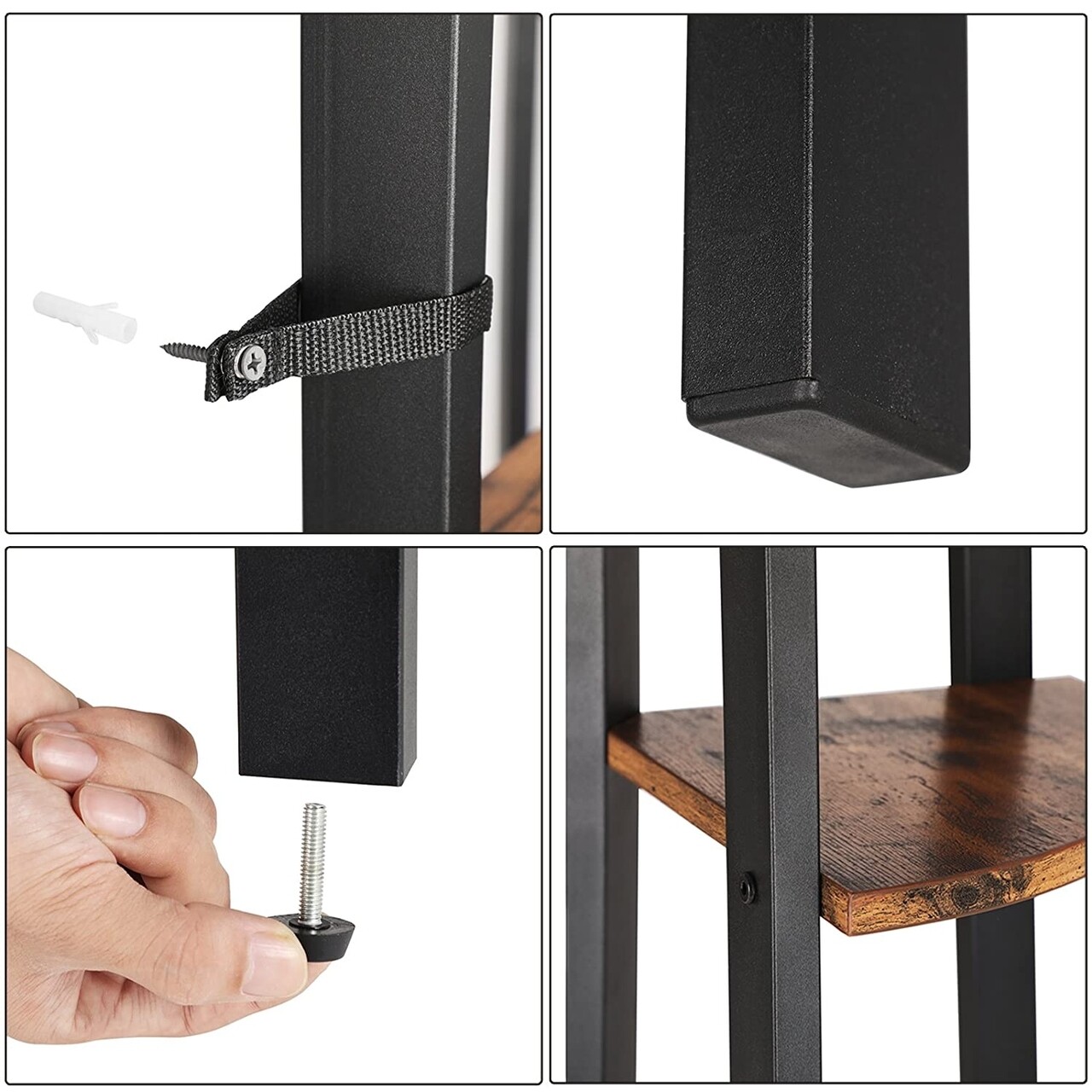 Sarok könyvespolc, Vasagle, 34 x 24 x 125 cm, vas / PAL, barna
